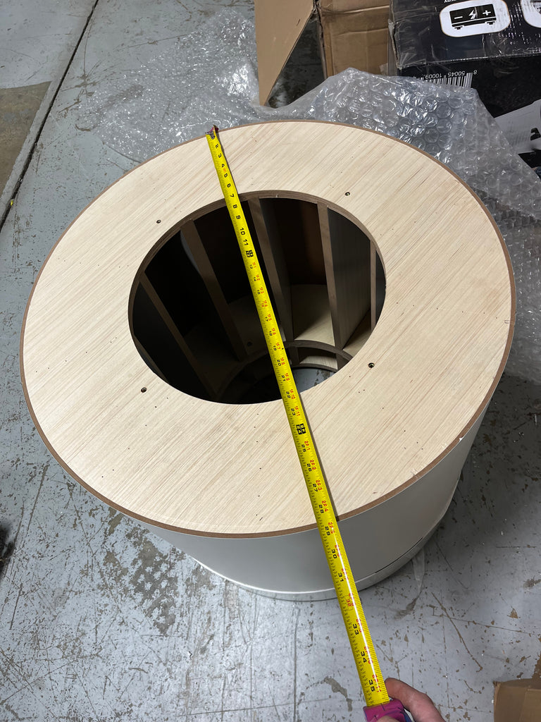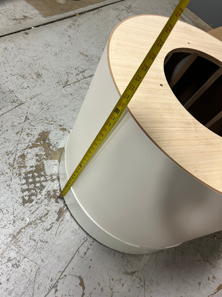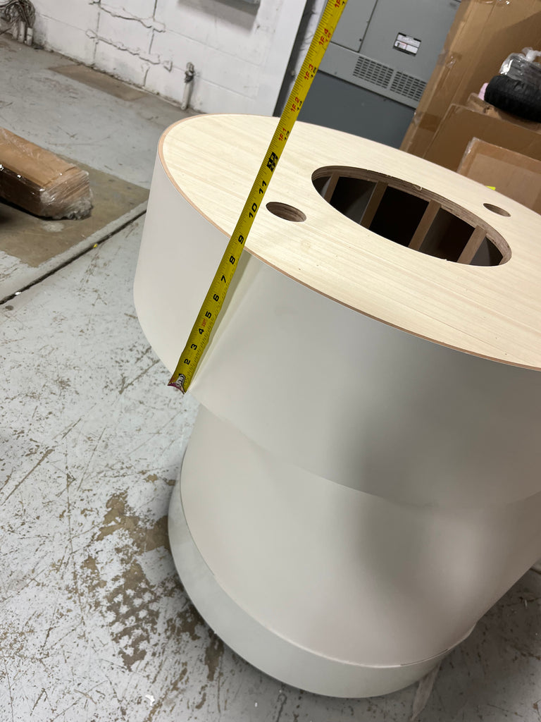 This is a wooden platform that is in 3 separate pieces. Together they measure 41" tall. The largest piece(bottom) measures 28x24. The middle piece measures 8" tall"x29" wide  and the top piece measures 23"x8".