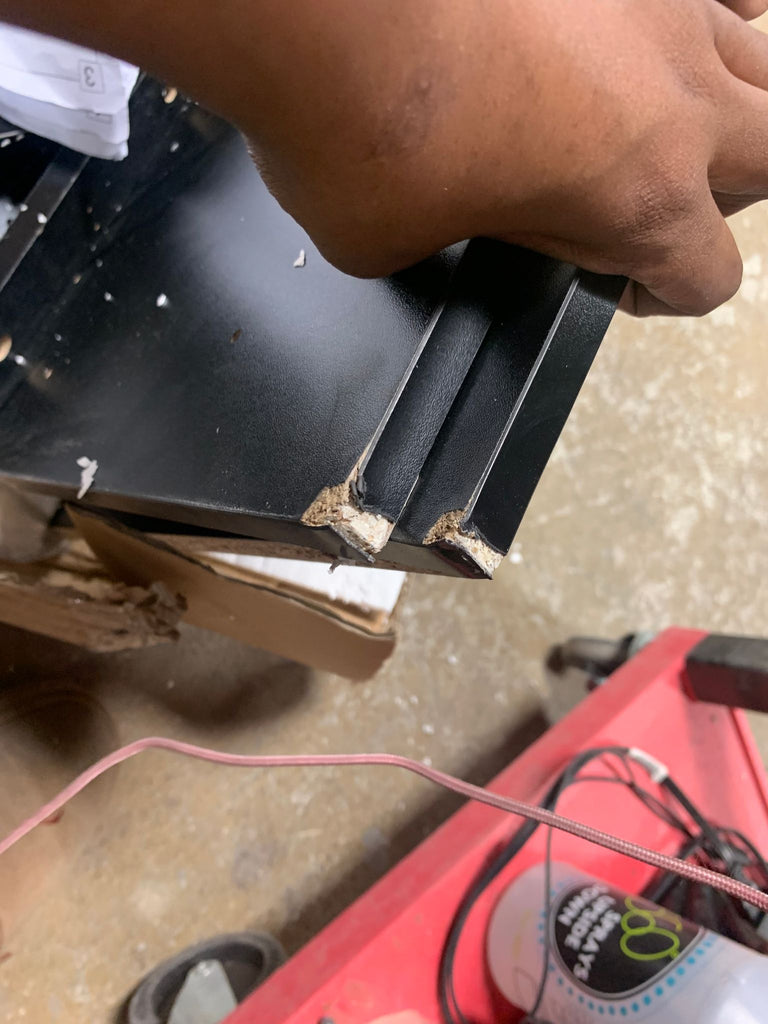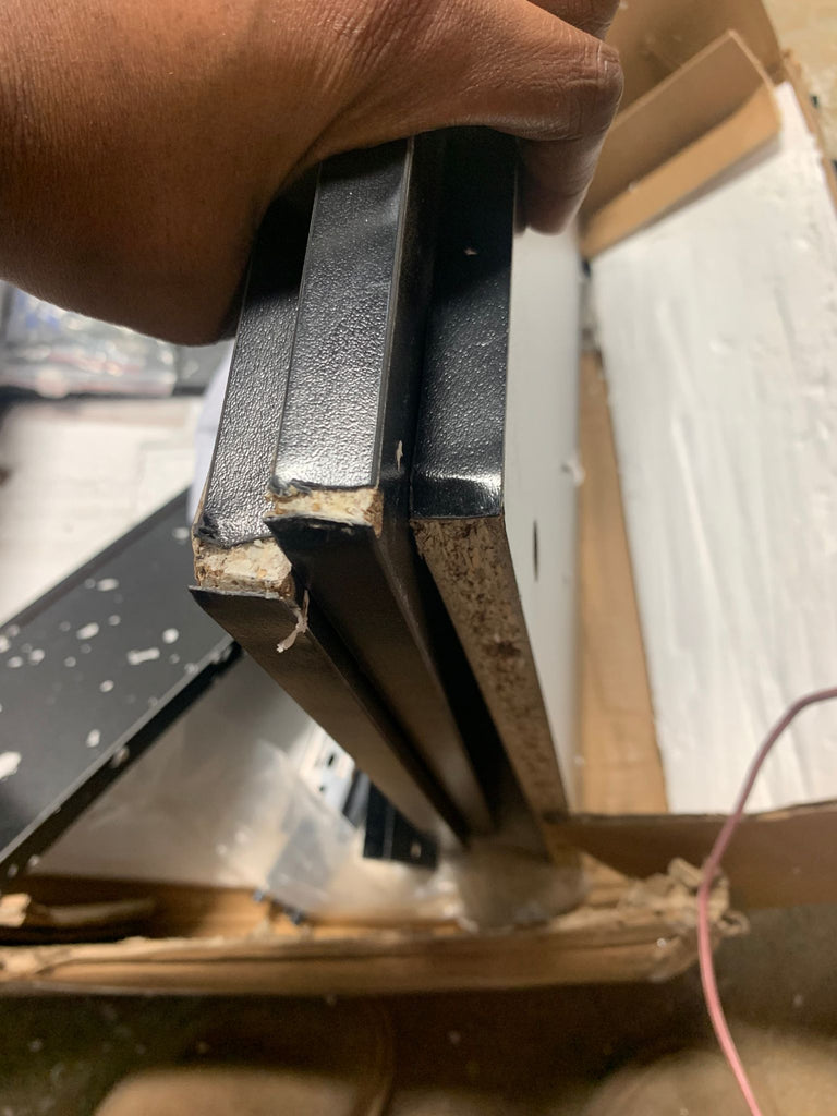 Open Packaging, The color is Black, Size: 2 drawer, there is some minor damages to multiple pieces...with major damage to main the corners of both sides pieces....not sure if damage areas will be shown once assembled and this item has been repackaged but appears to have all pieces needed....please see in-house photos for more details