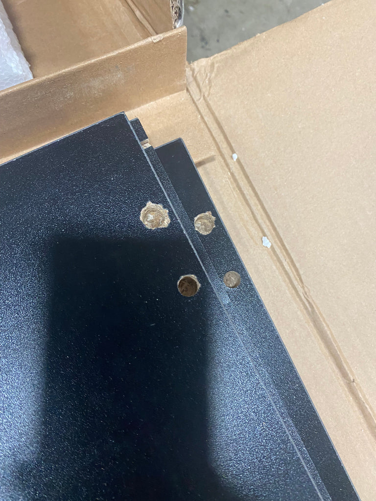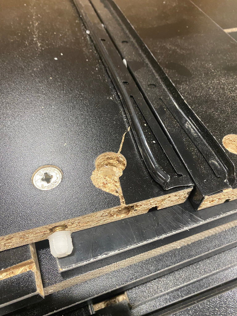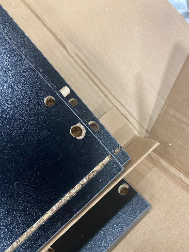 Note: AS IS Condition: Damage on 1 drawer side at cam lock joint. Chipped/scratches/scuffs on drawer fronts. Slight chips on screw holes on multiple boards. May be missing screws/small parts due to previous opening. See photos.