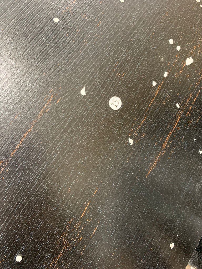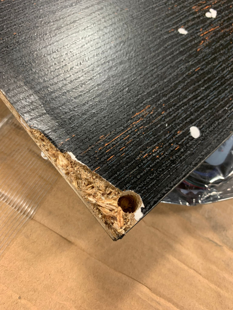 Open box, The color is black, Size: tvs up to 75", there is a small damaged area on piece #15 and there is also loose hardware some may be missing please see in house photos for more details