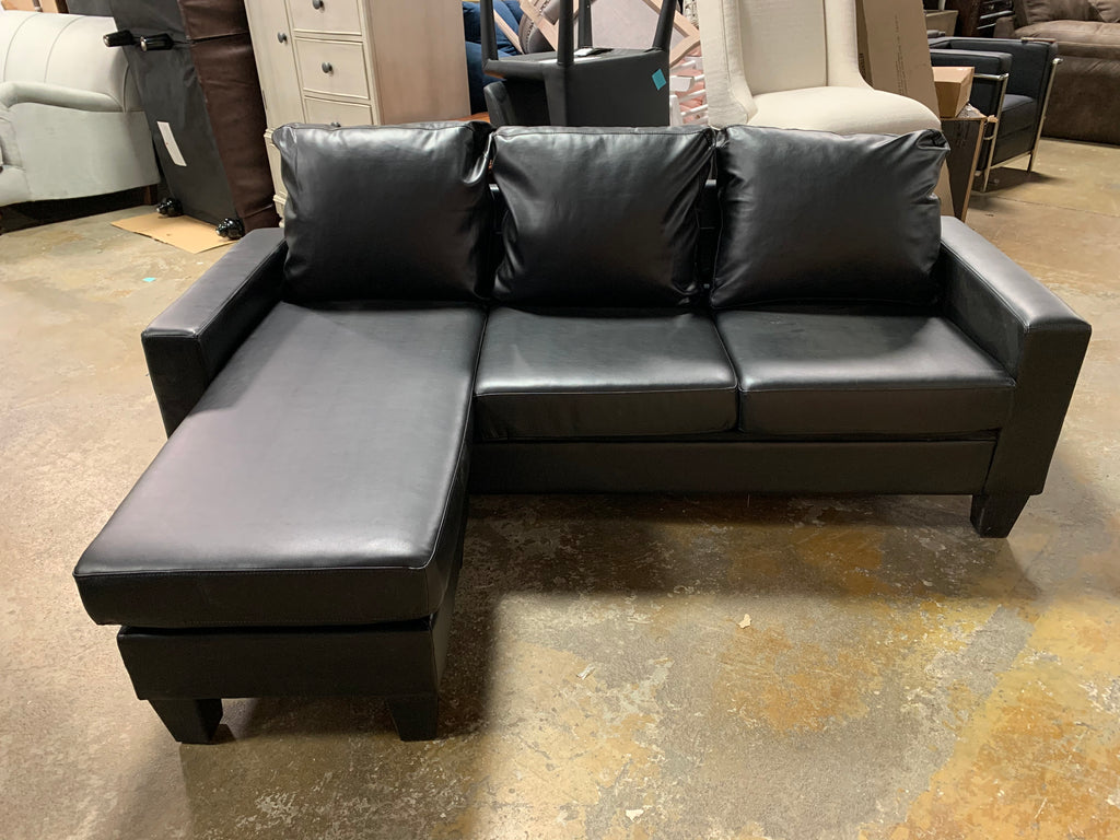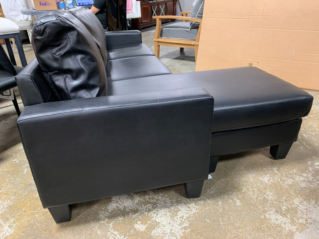 This sectional is in GREAT condition. Sectional piece can be flipped to other side. No tears or scratches. Please note measurements. Please see all photos for more details.