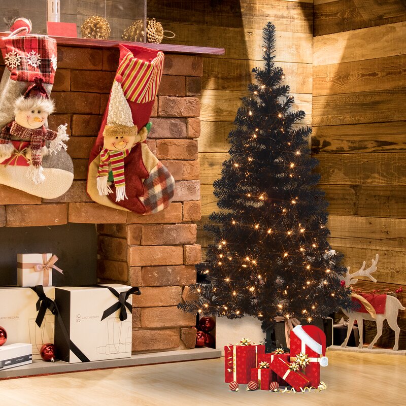 Black Fir Artificial Christmas Tree with 150 Clear/White Lights QL293
