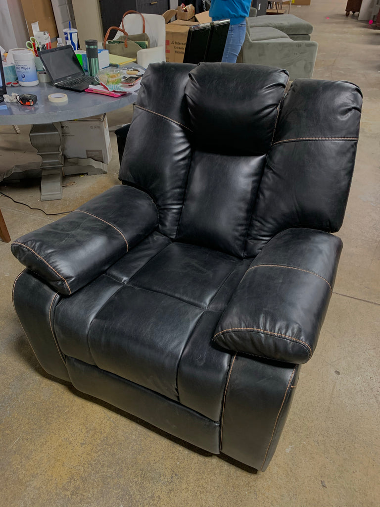 This chair is in great condition. It is an electric recliner that does not recline. No rips or stains. The headrest does not fully rest on the back - shown in photos. Please see all photos for more details.