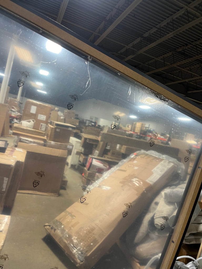 Note: Set of 4 card board back panels needss to be reattached. 3 out 4 glazes are cracked See in house photos for more details.