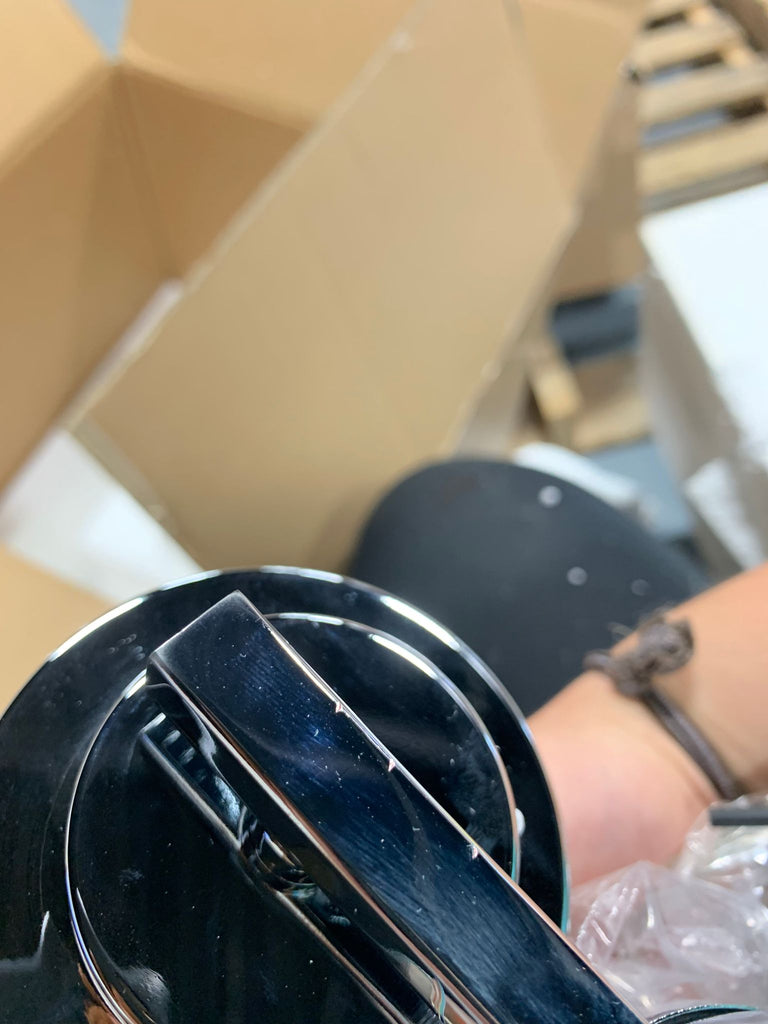 Original Packaging, The color is black, great condition except some light scratches/chipped chrome on light holder