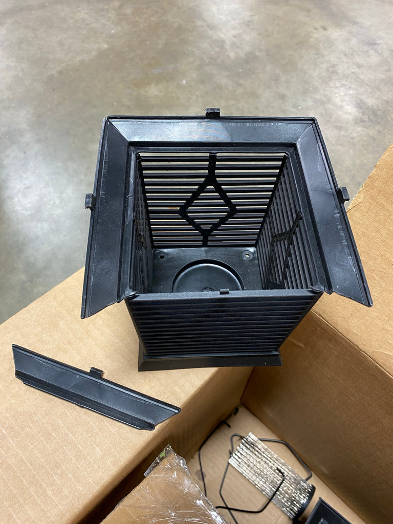 One lantern is in GREAT condition.  One has a broken piece, but still has a functional LED unit; see photos for details.  This is an opened box item.  Some assembly required.  Does not include hook to hang lantern on.