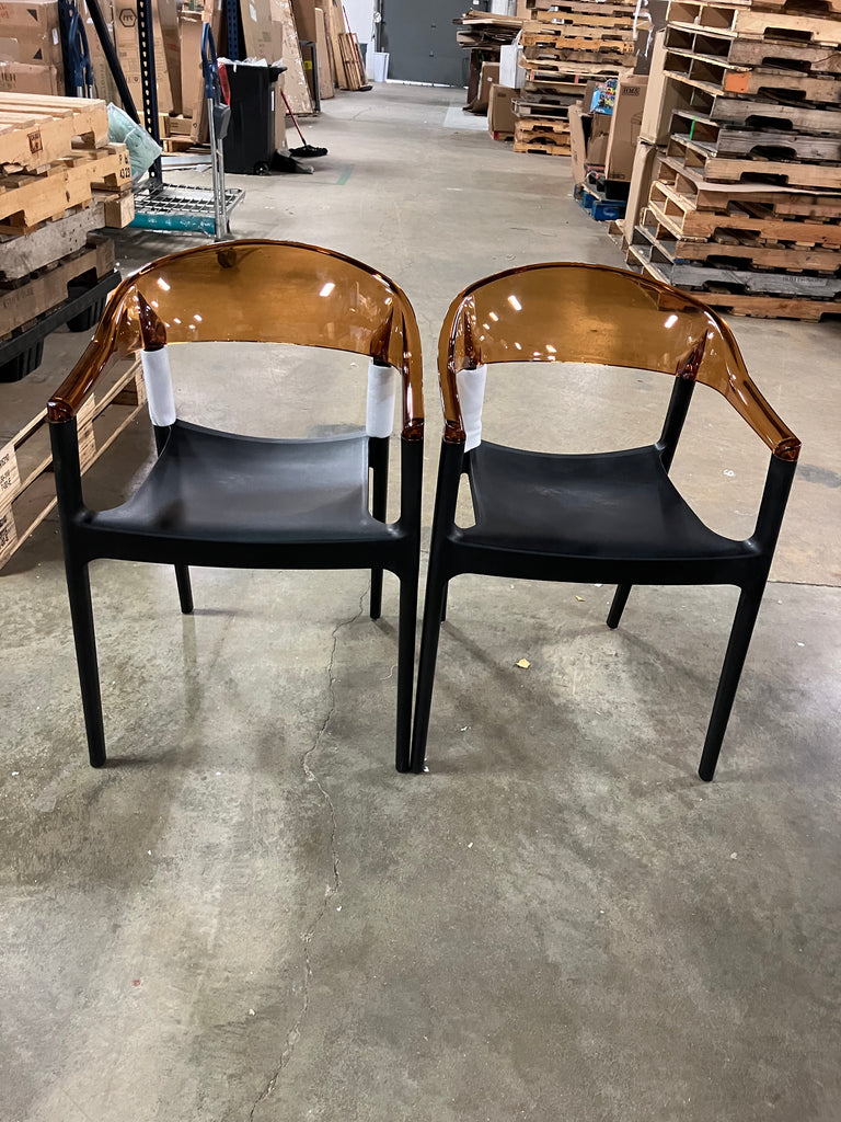 Black/Transparent Amber Stella Outdoor Stacking Dining Armchair - Set of 2