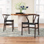 Out of the box, The color is Black/ Walnut, 1 set of 2 chairs, previously opened, no assembly needed, slight scratching to legs