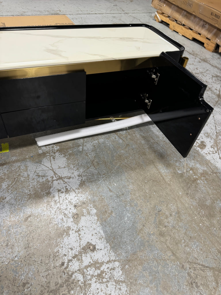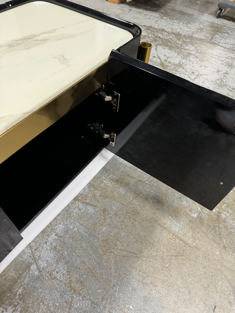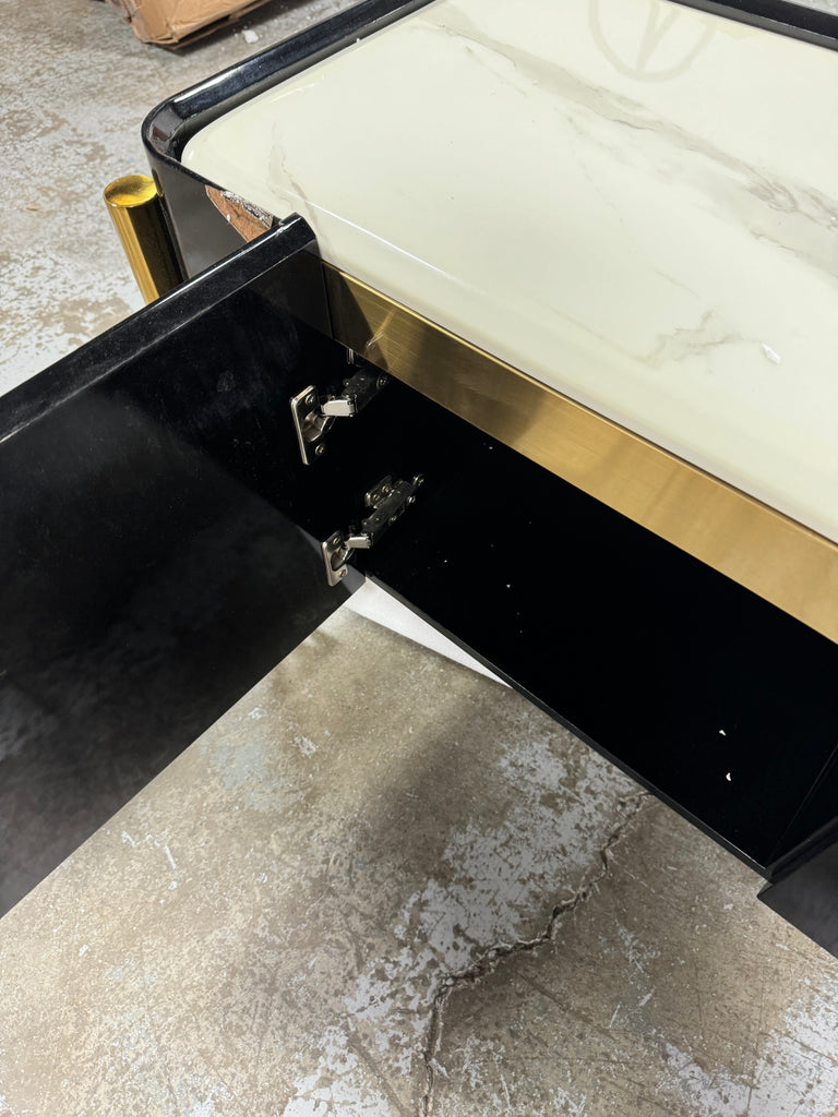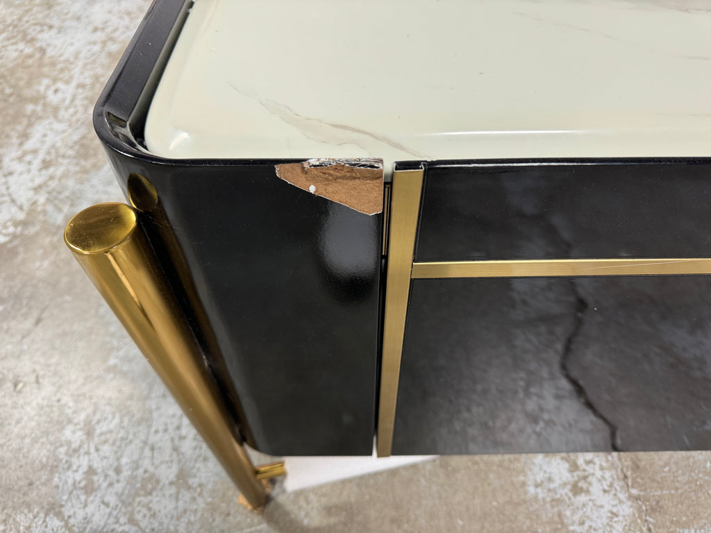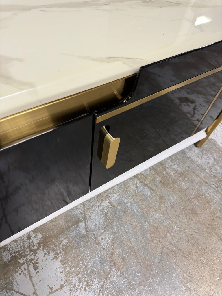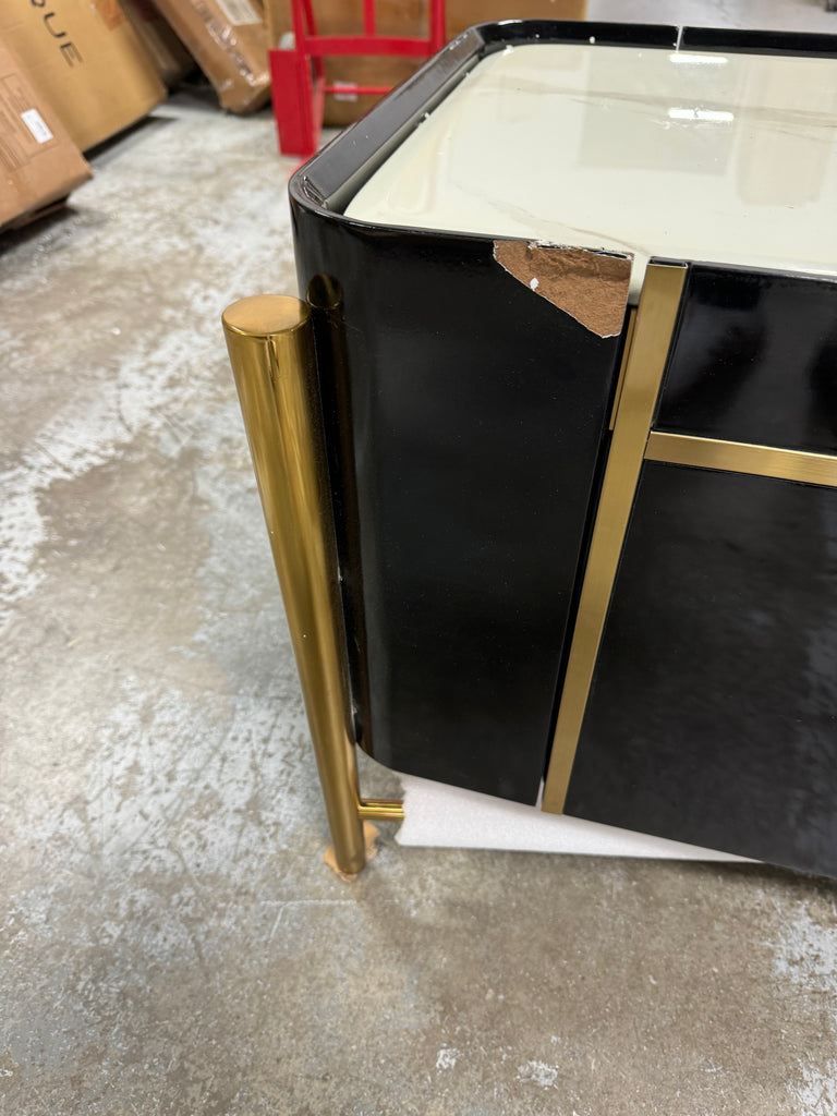 Note: The only link color option is black and white, but color of actual item is solid black with gold trim and off white marble table top, cosmetic imperfection above one cabinet door, see pictures for actual color and look