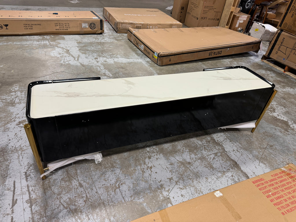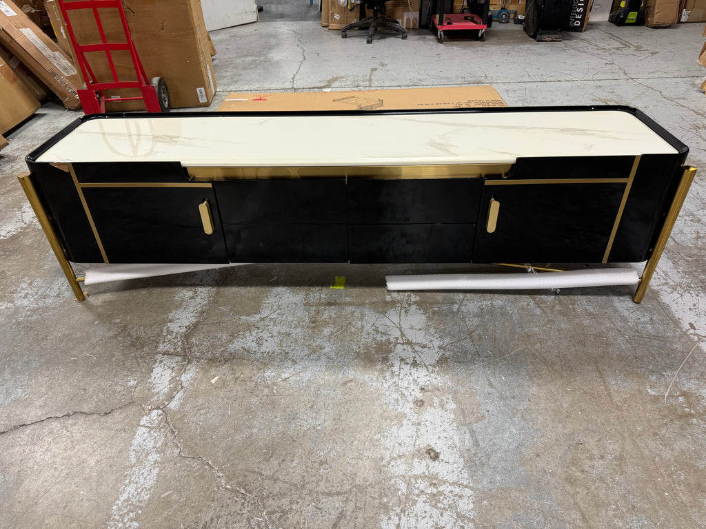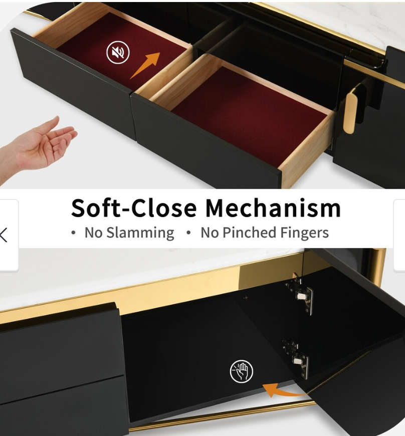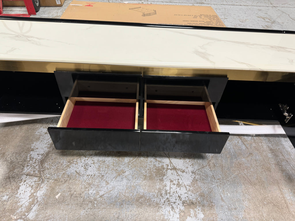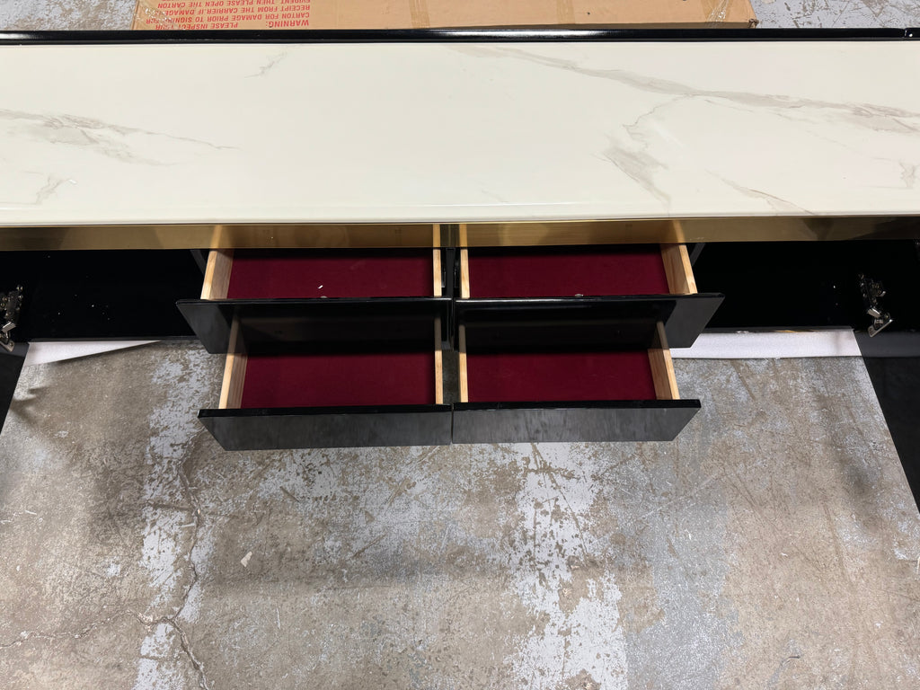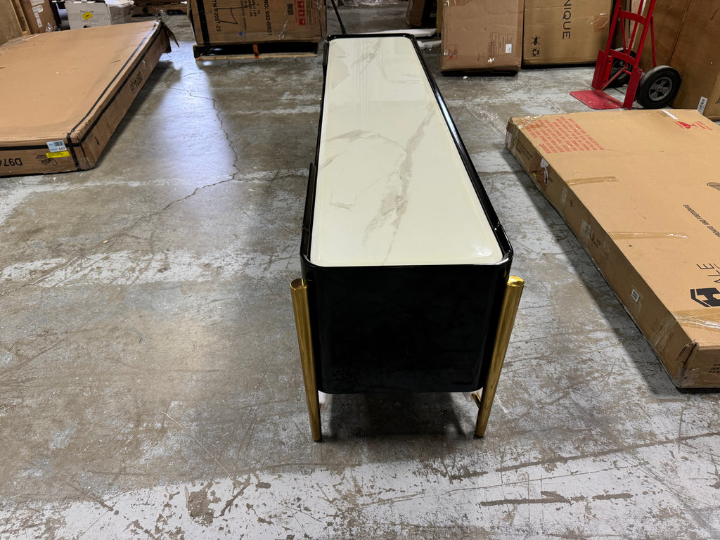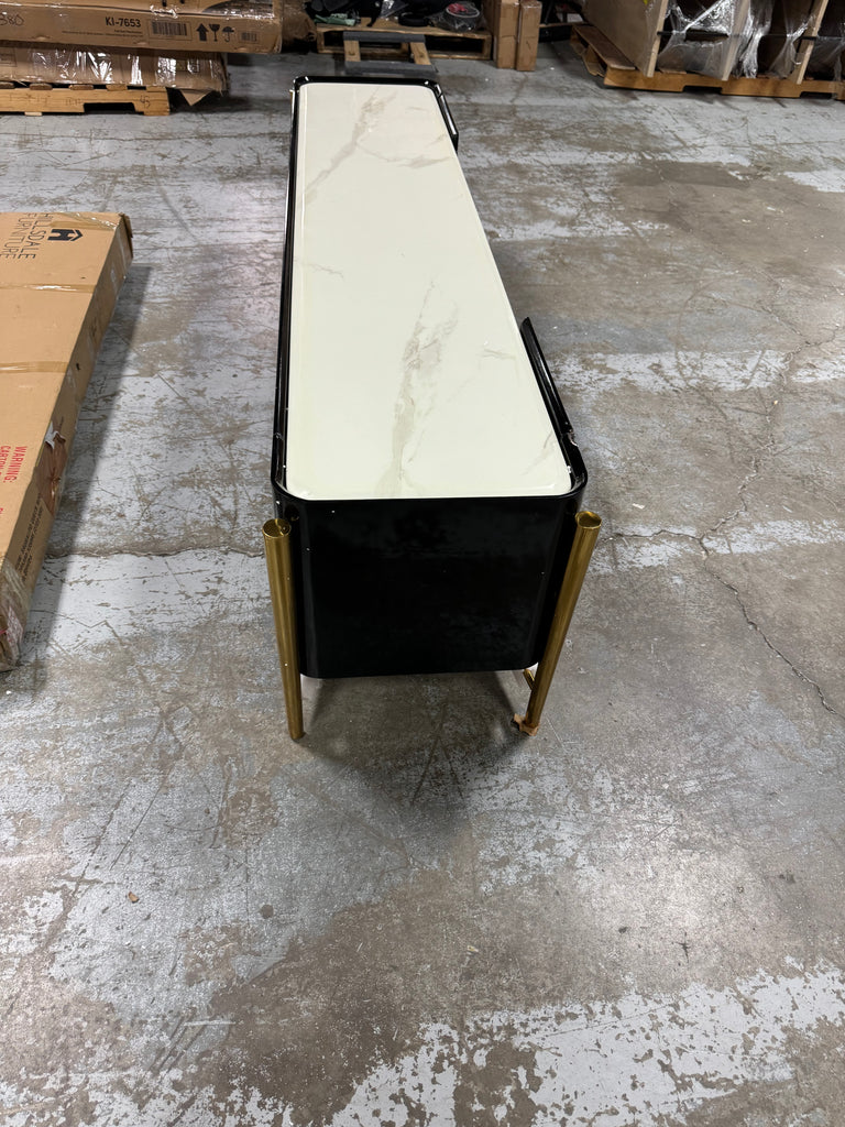 Note: The only link color option is black and white, but color of actual item is solid black with gold trim and off white marble table top, cosmetic imperfection above one cabinet door, see pictures for actual color and look