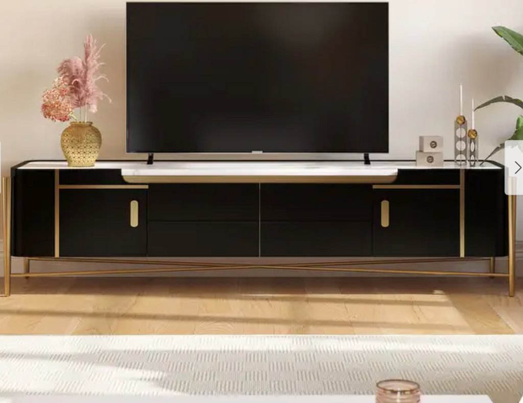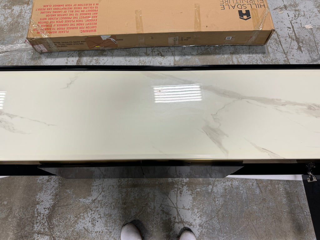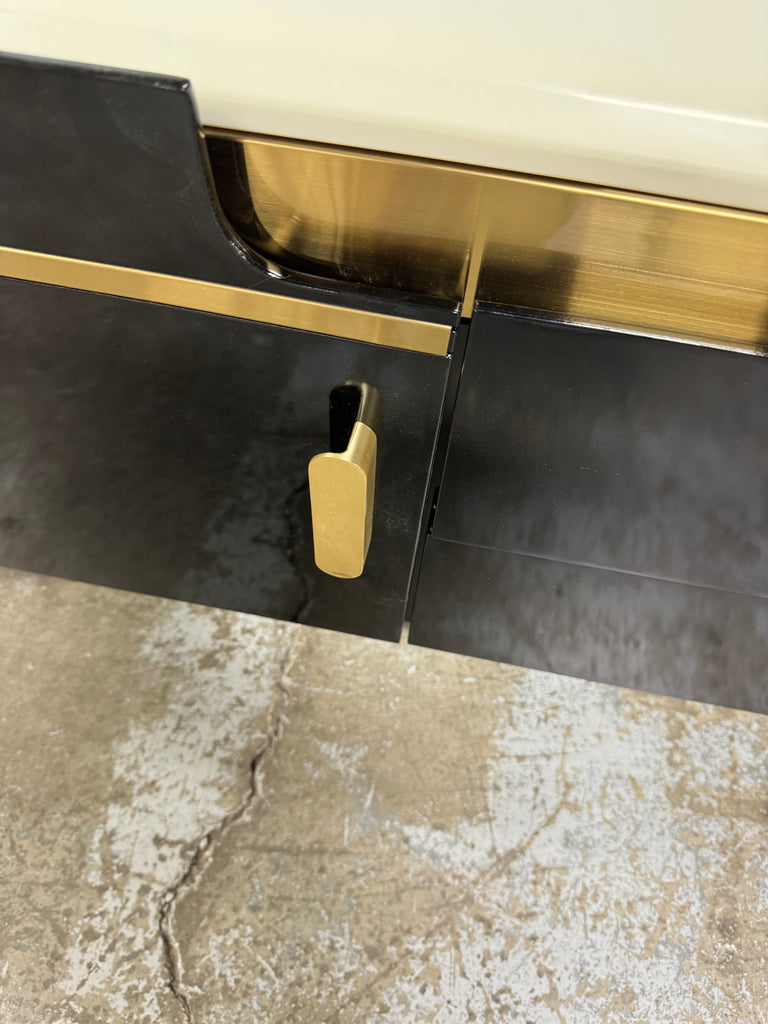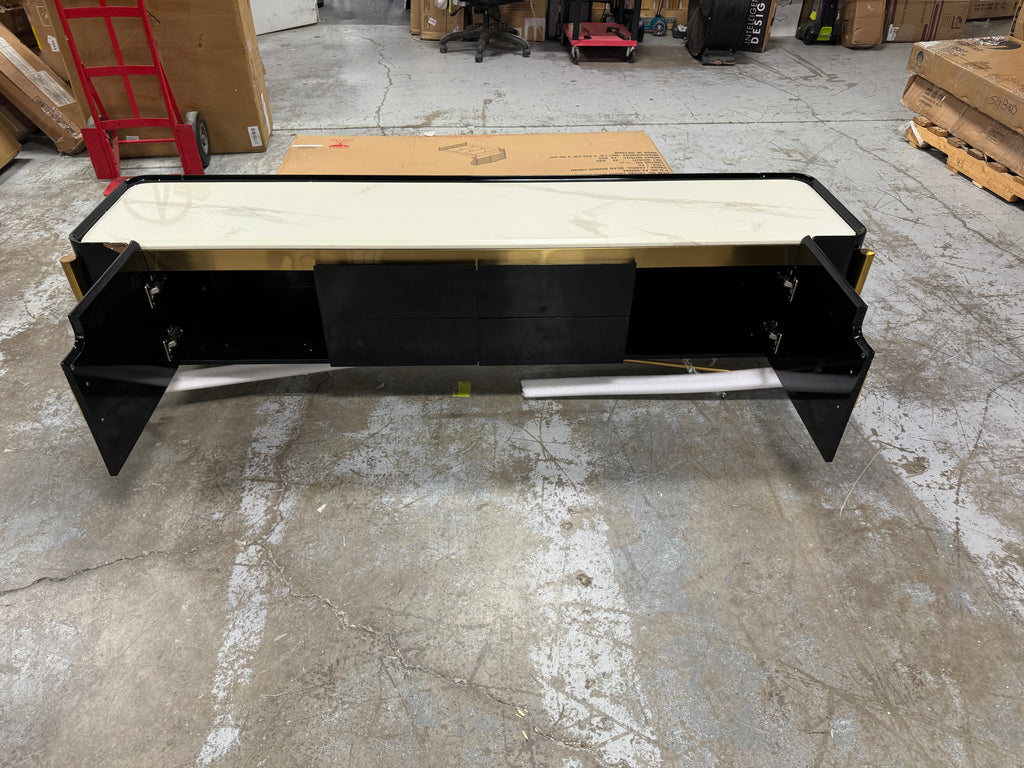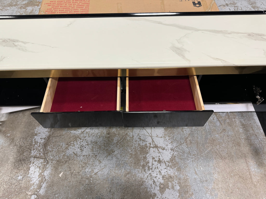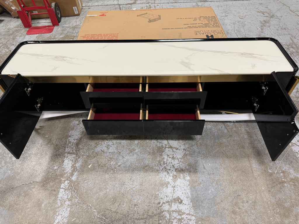 Note: The only link color option is black and white, but color of actual item is solid black with gold trim and off white marble table top, cosmetic imperfection above one cabinet door, see pictures for actual color and look
