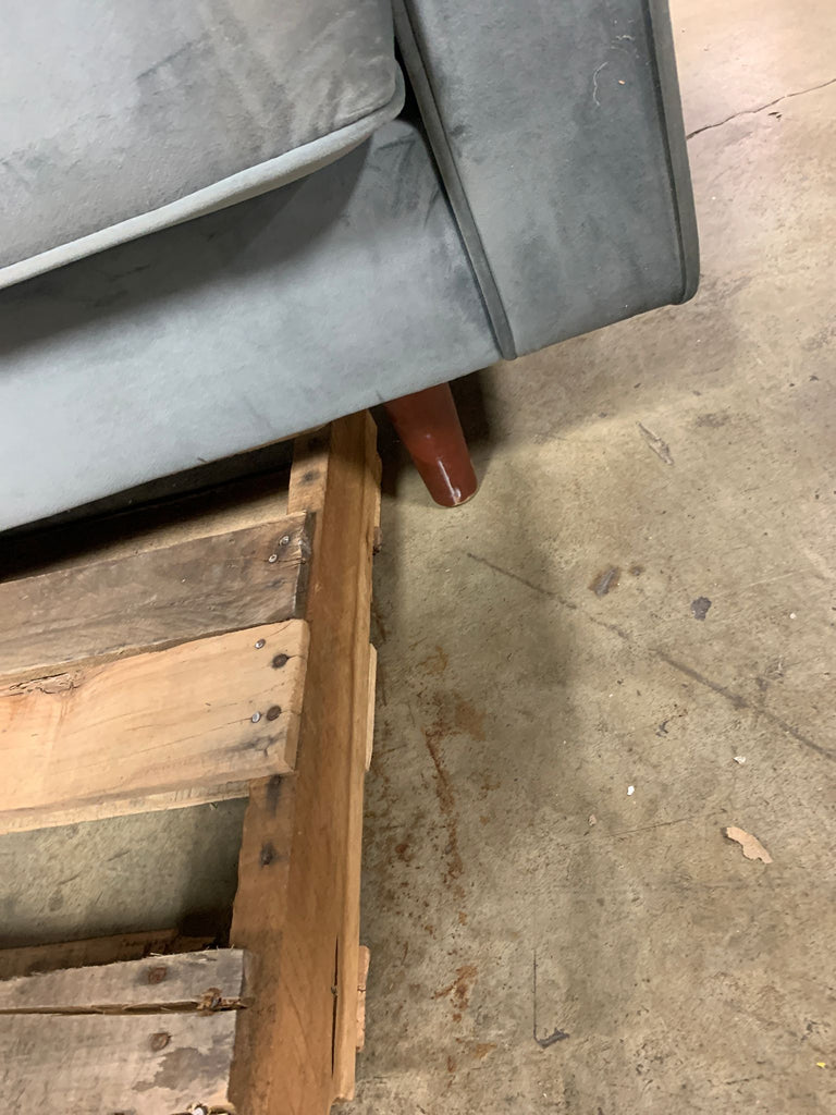 Please note: this item has a small rip on the seating area, a scratch on front right leg, and also has removable warehouse dirt on it see in house photos for more details