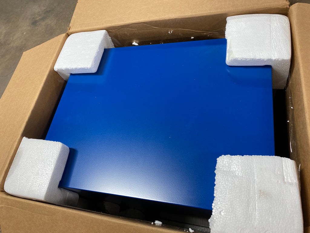 Item is in GREAT condition.  This is an opened in-box item.  Finish color: Blue