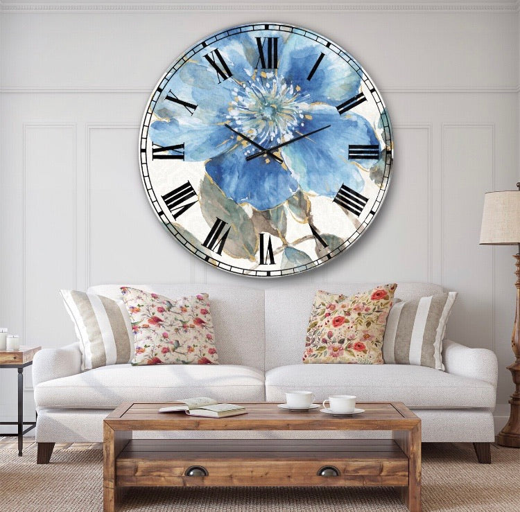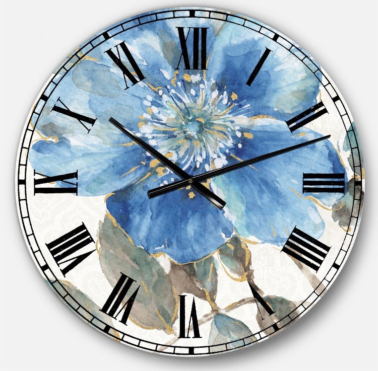Blue Indigold Watercolor Flower I Metal Wall Clock CG774