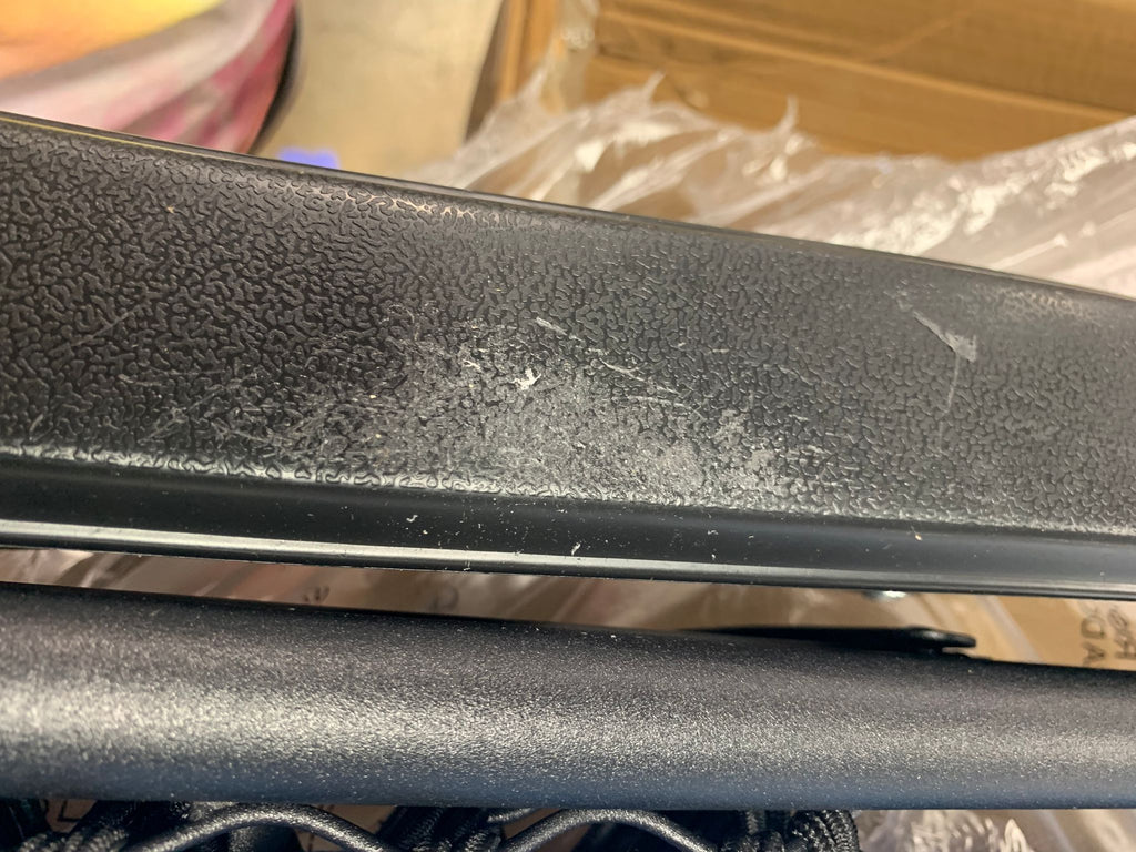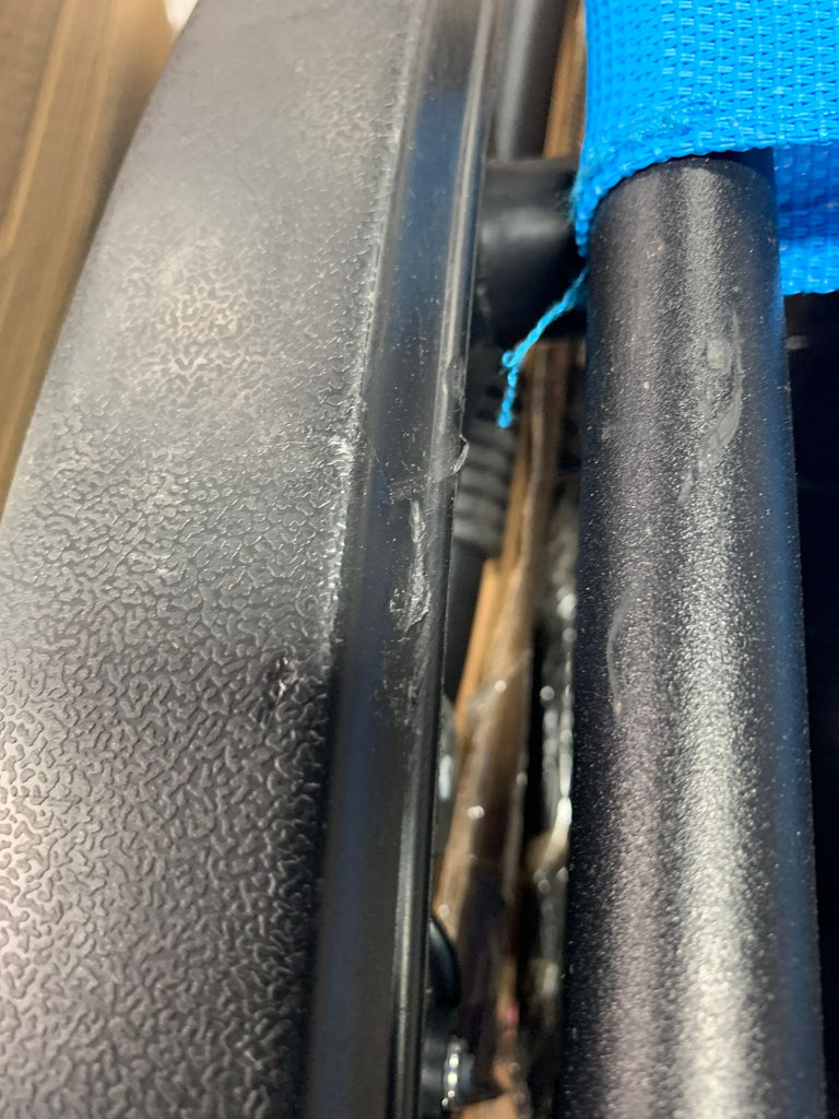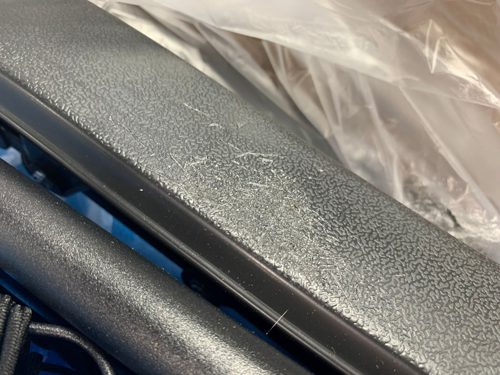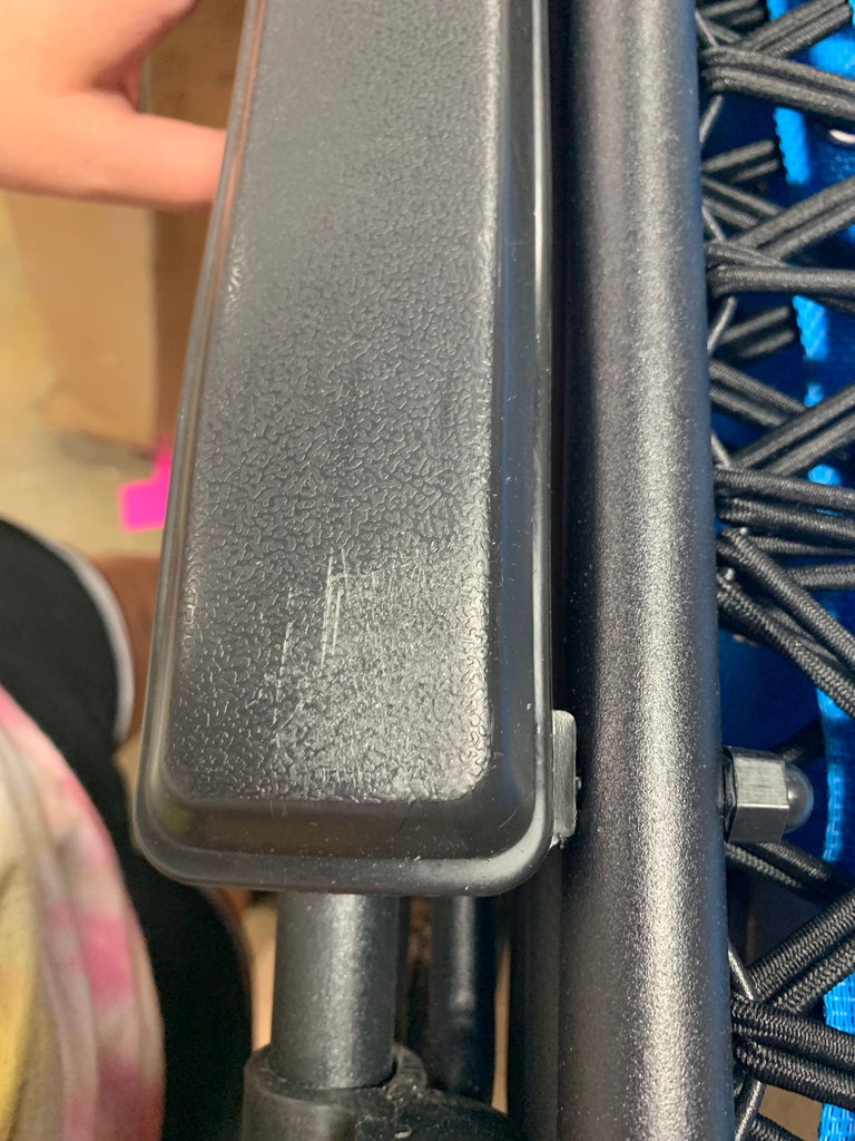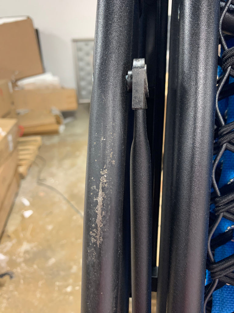 Original Packaging, The color is blue, set of 2 chairs; lots of scratch/scuffing on armrests and legs