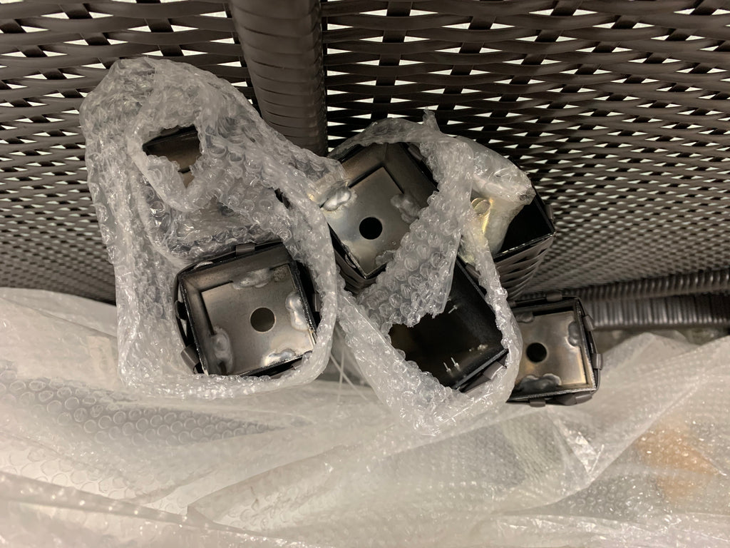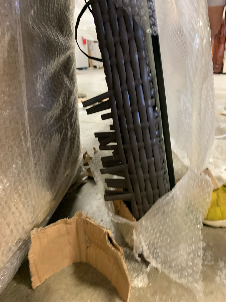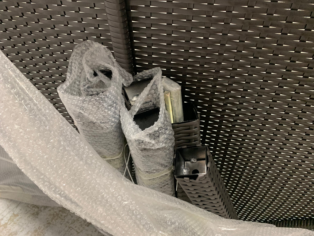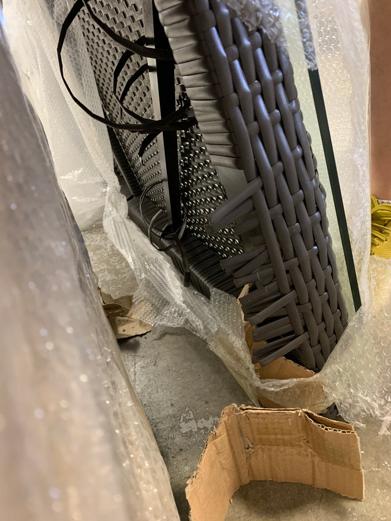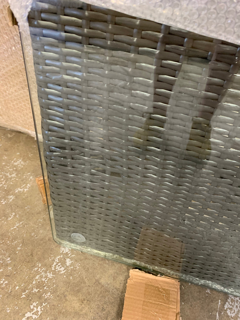 This table is in great condition and some assembly is required. Out of the box item. All parts have been accounted for - no instructions included. Tempered glass tabletop is in great condition. There is some unraveling of the wicker on one side, can be trimmed - shown in photos. Please see all photos and the link below for more details.