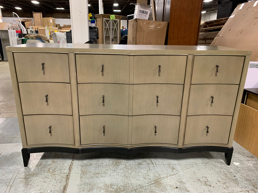 This dresser is in good condition. Some chips in the wood on two drawers and the left side (when facing) corner - shown in photos. Top drawers are felt lined with removable jewelry trays. All drawers open and close properly. Drawers are dovetailed and soft close. One small imperfection on the bottom left drawer (when facing) - shown in photos. Please see all photos and the link below for more details.