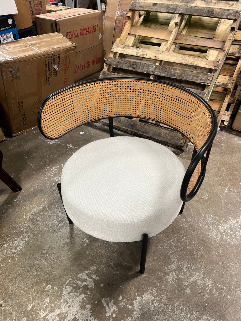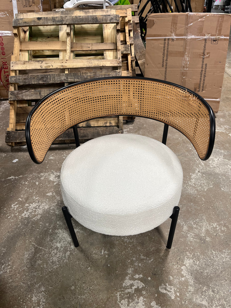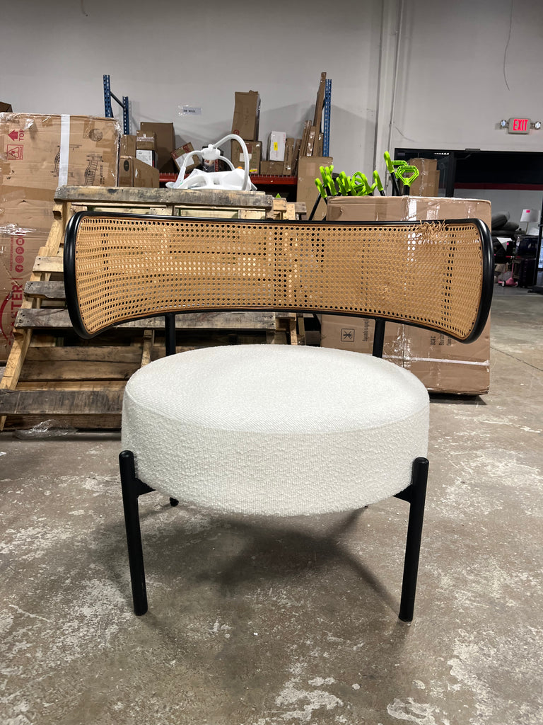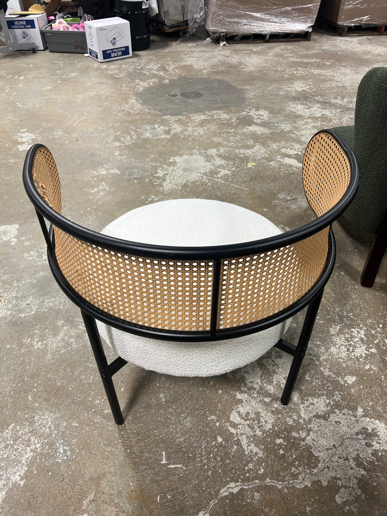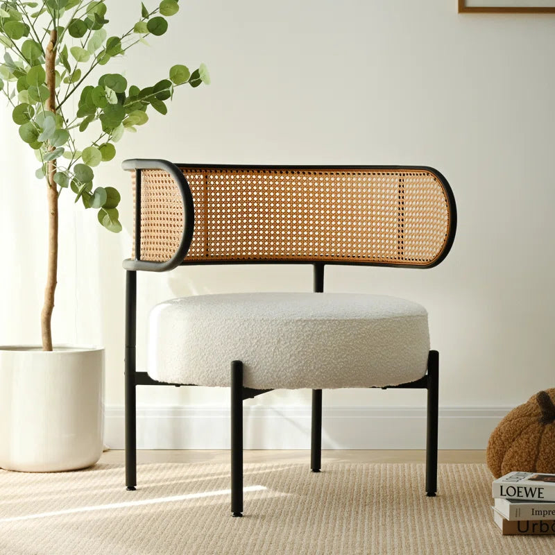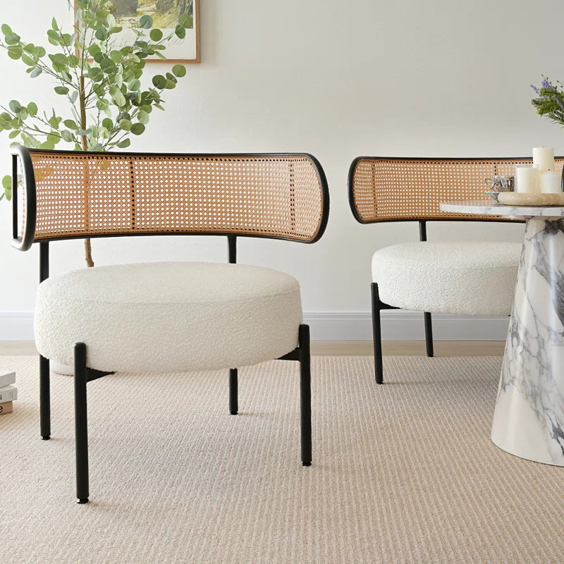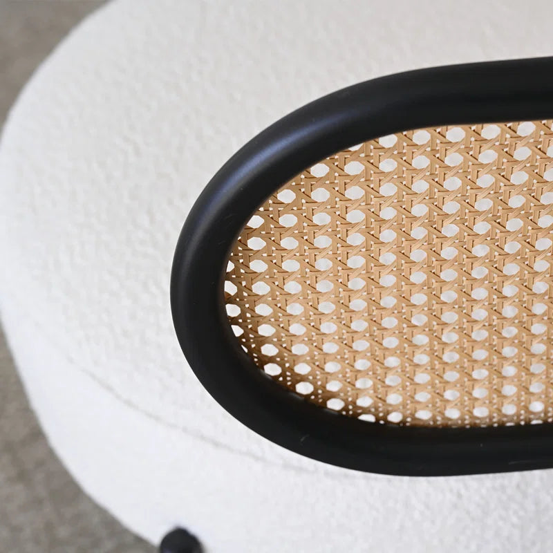 Boucle Upholstered Barrel ArmChair with Rattan Back