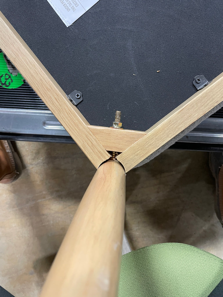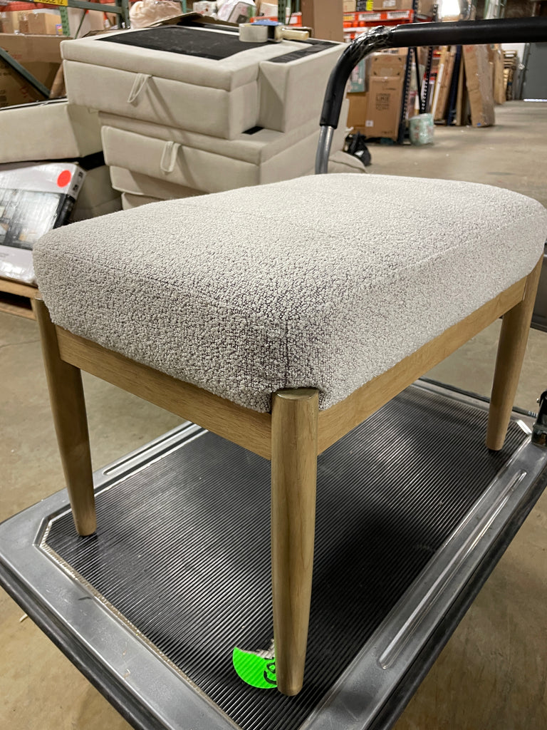 Note: Out of box, good condition except of the legs has a bolt loose and may need a little wood glue. Ottoman is sturdy without this but maybe not for sitting?
