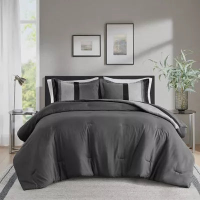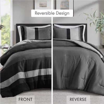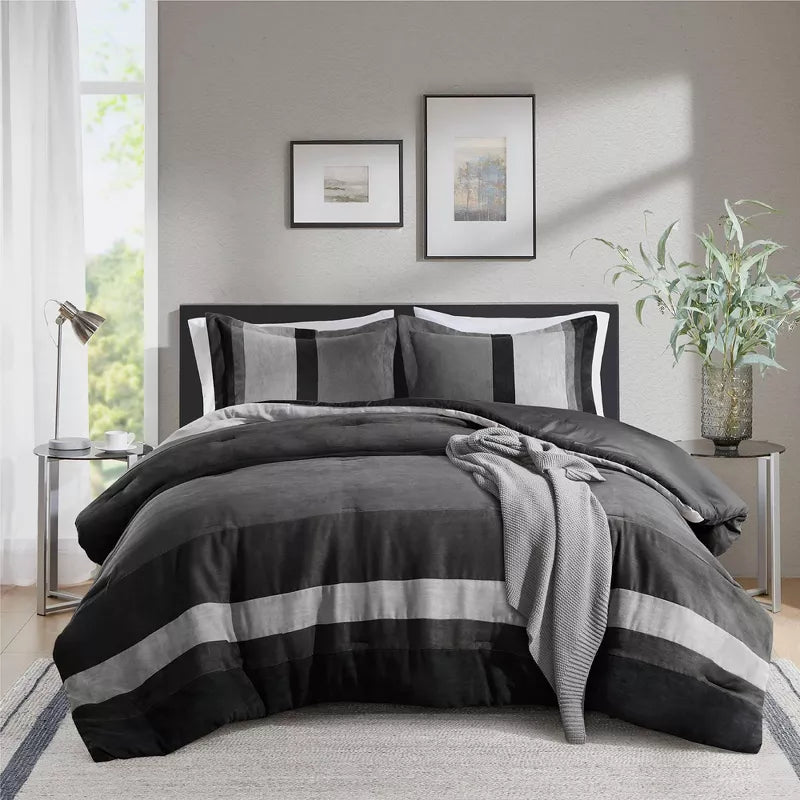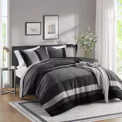 Boulder Striped Microsuede Comforter Mini Set - Full/Queen