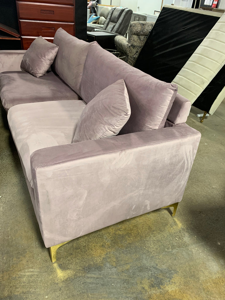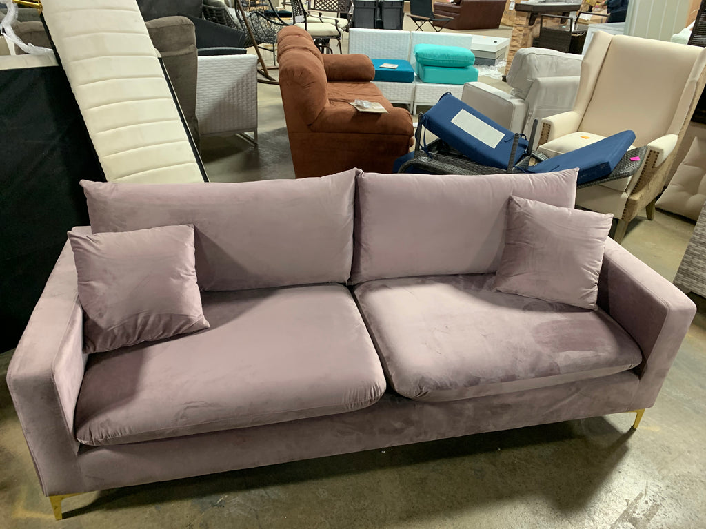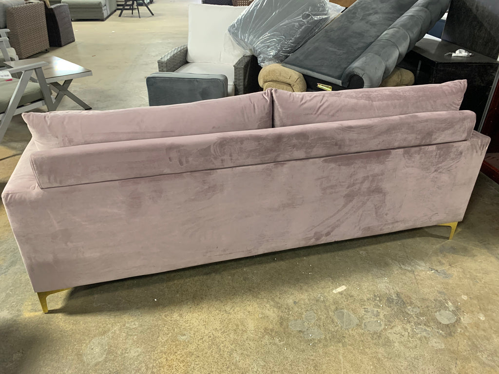 Boutwell Velvet 81.5" Square Arm Sofa in pink velvet. See photos for accurate color. Pillows included.
