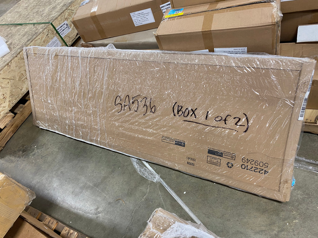 Item is in great condition. This is an opened in-box item, in two boxes. Finish color: Iron Oak