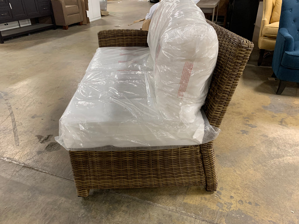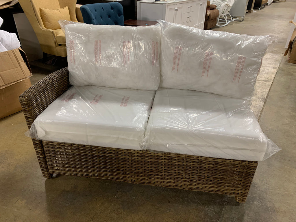 This wicker left corner loveseat is in GREAT condition. Cushions are included; however the slipcovers for the cushions are not - shown in photos. Please see all photos and the link below for more details.