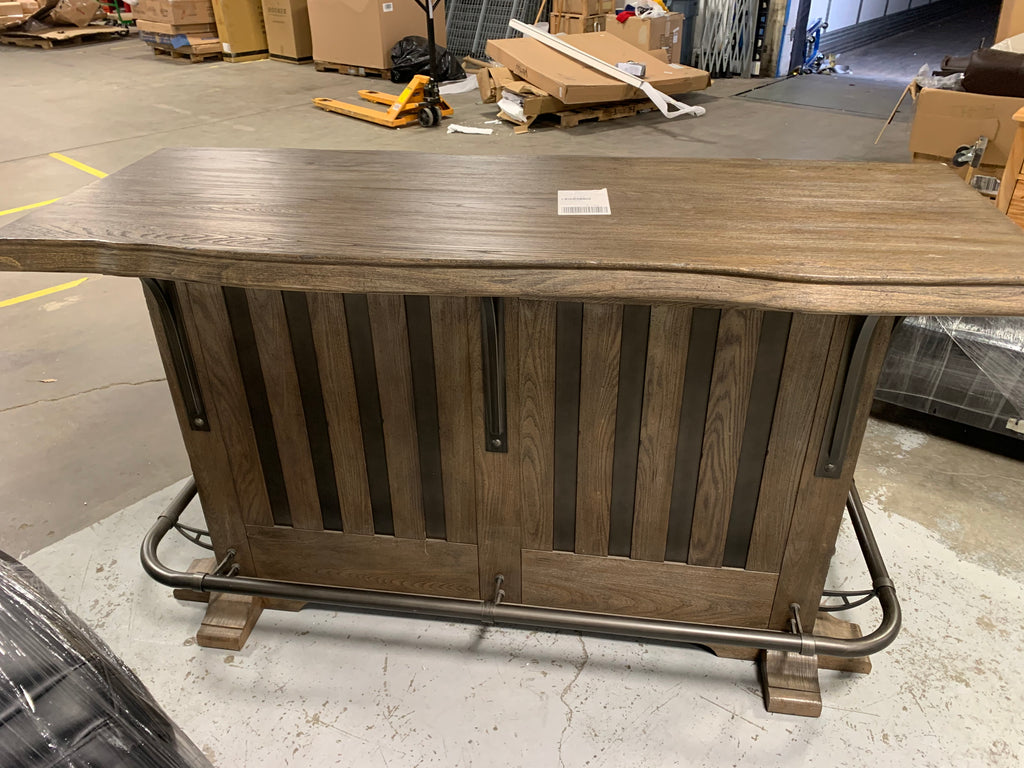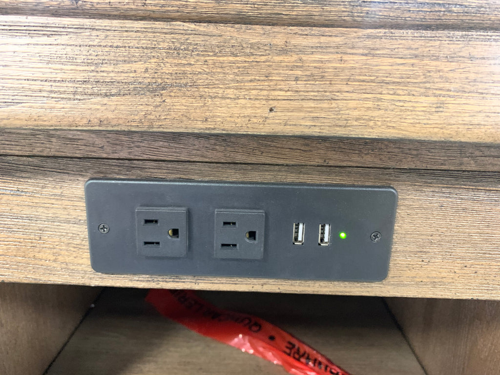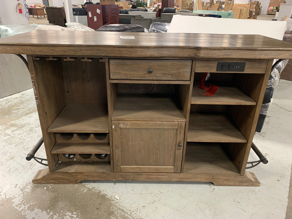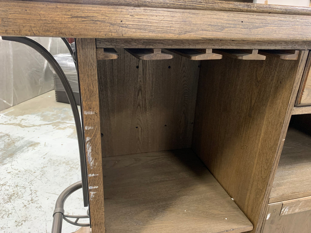 In great condition. Outlets have been testes and work properly. One small chip on front, indicated by post-it note. Small scratches on front, more details shown in photos. One leg has a crack, but it is still structurally sound. On the back of the bar there are white scuffs. A few top corners show some signs of wear. **Please see ALL photos for more details.**