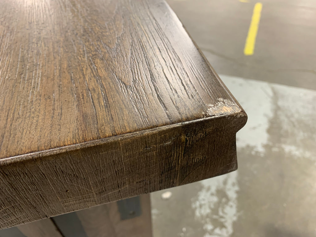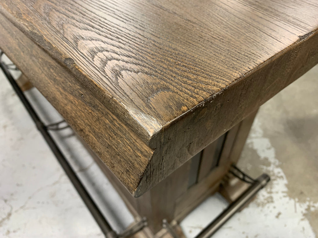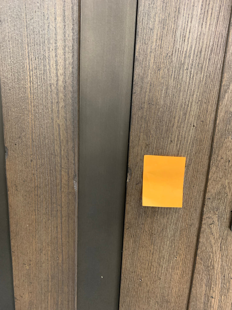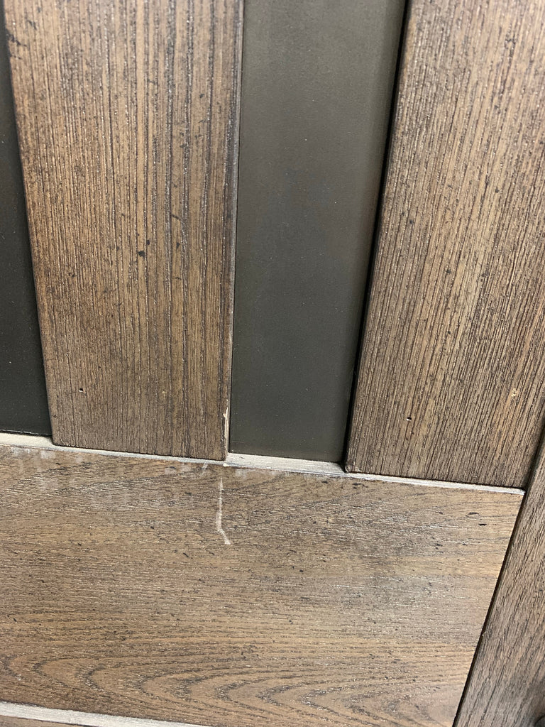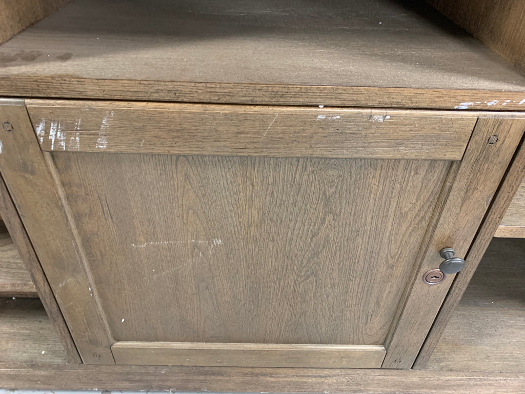 In great condition. Outlets have been testes and work properly. One small chip on front, indicated by post-it note. Small scratches on front, more details shown in photos. One leg has a crack, but it is still structurally sound. On the back of the bar there are white scuffs. A few top corners show some signs of wear. **Please see ALL photos for more details.**