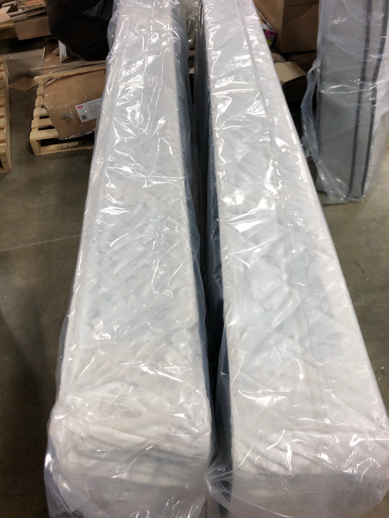 This is an out-of-box item in great condition. All items are still in the manufacturer's packaging. Includes mattress and box spring. Firmness is unknown, appears to be medium-medium firm.