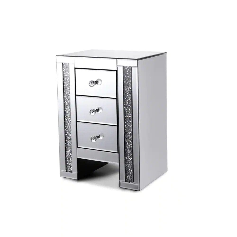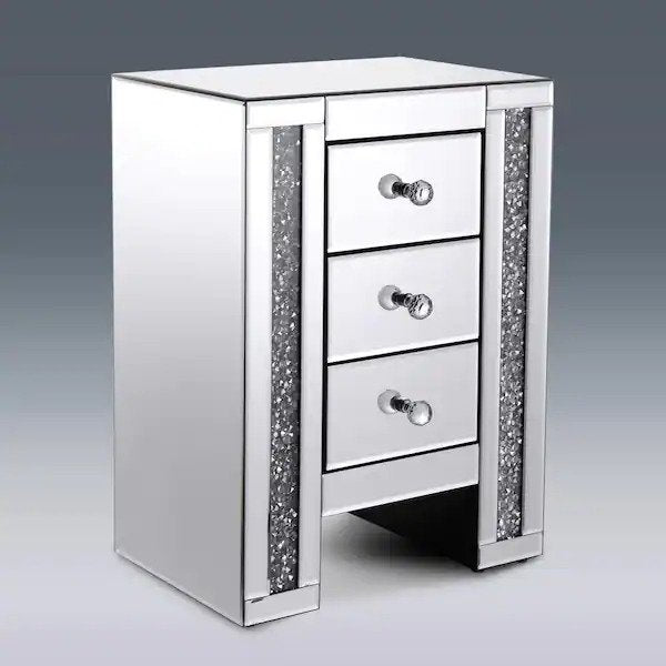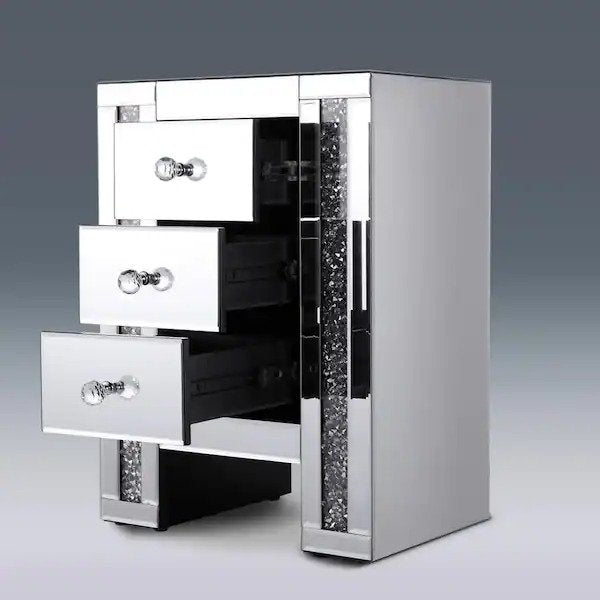 3-Drawer Sliver H-Shape Mirrored Nightstand