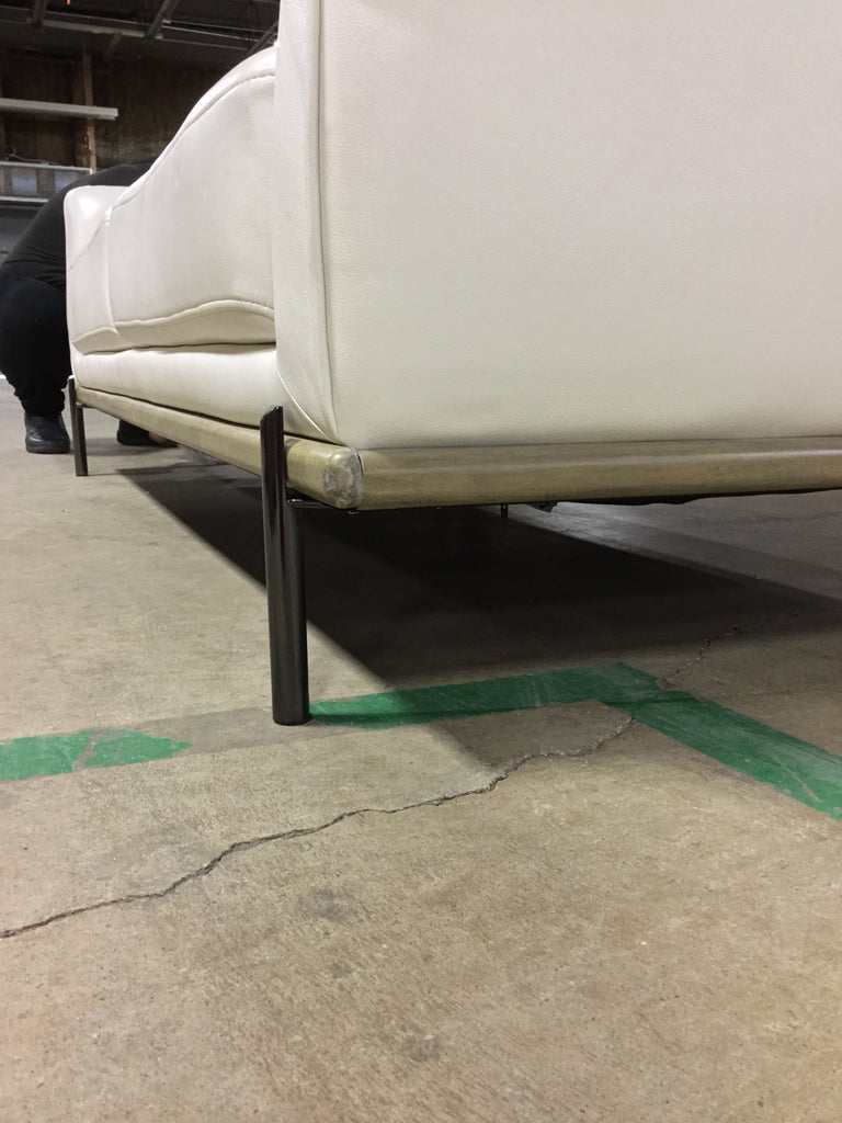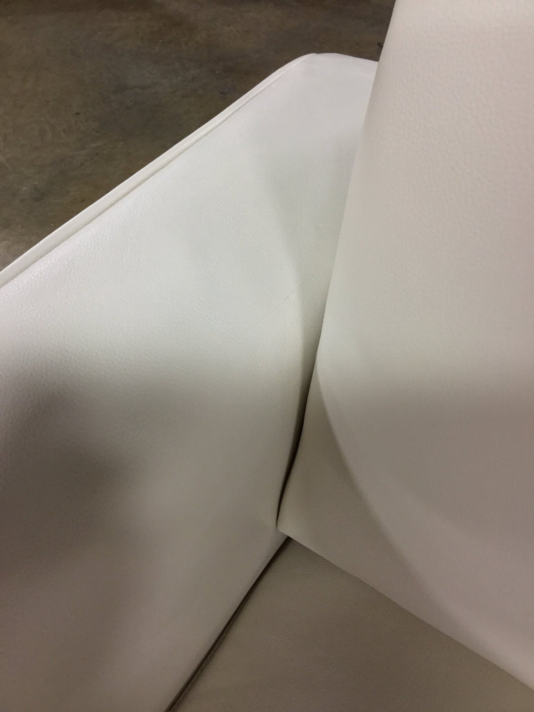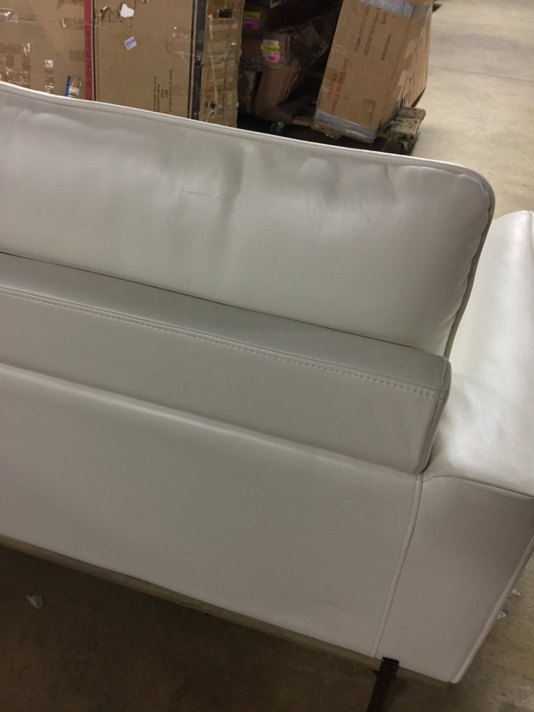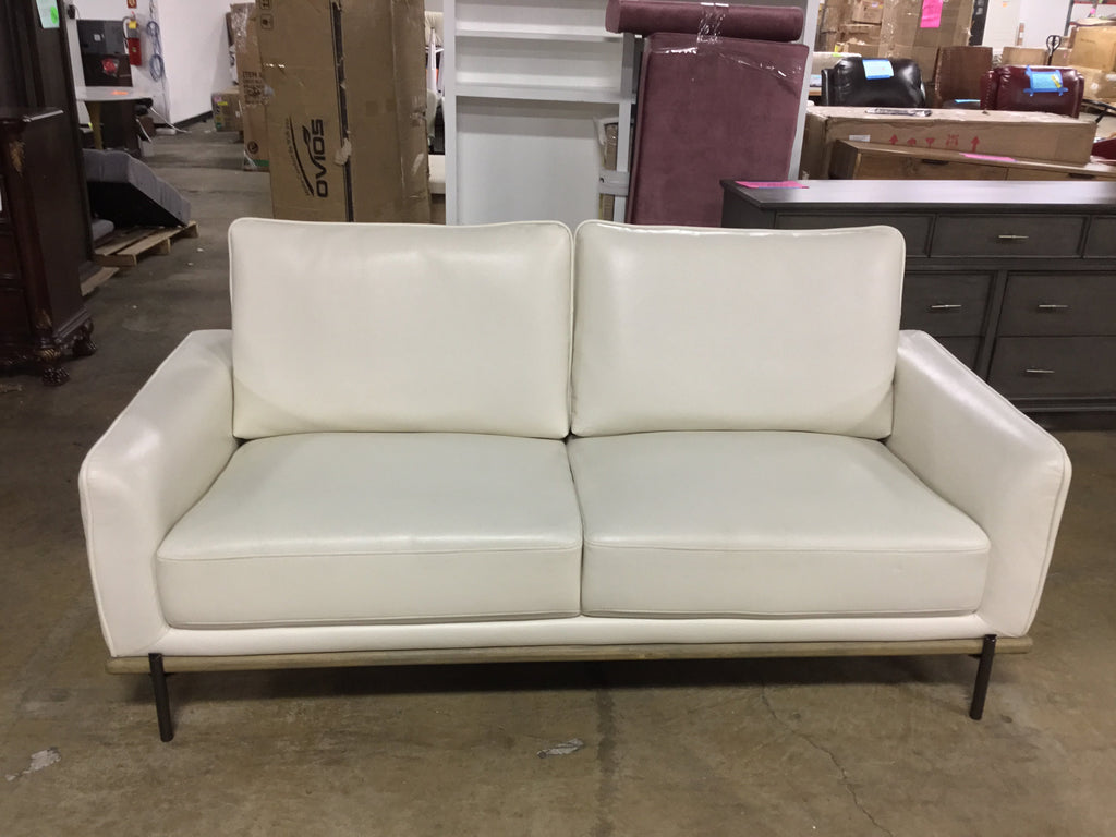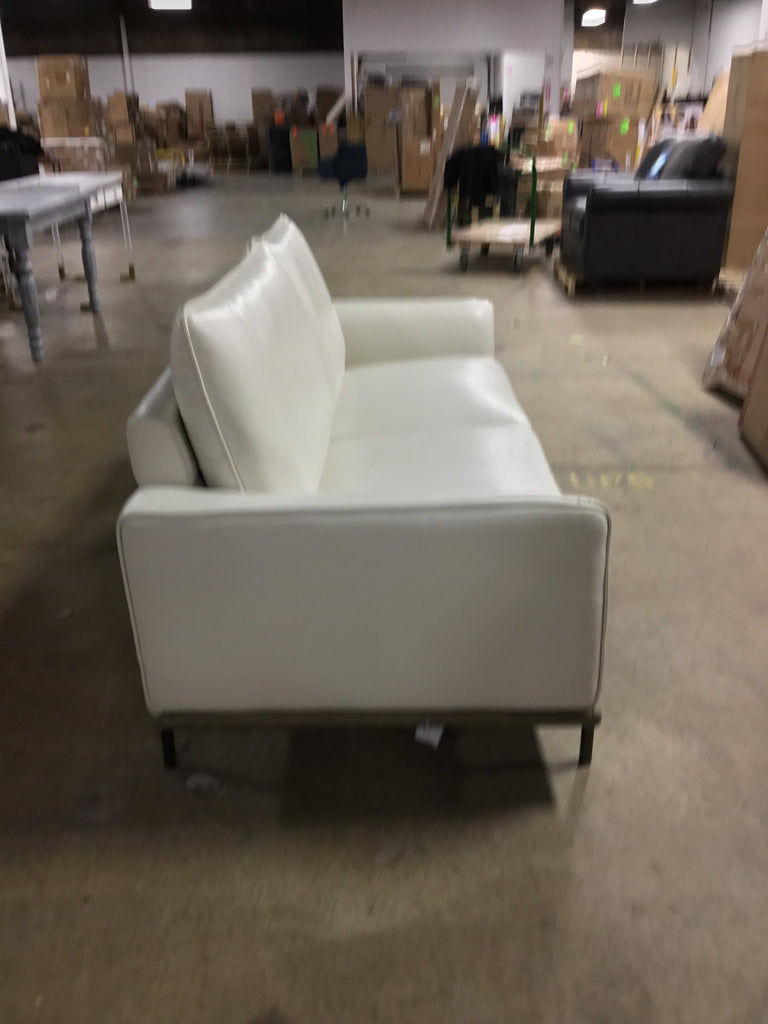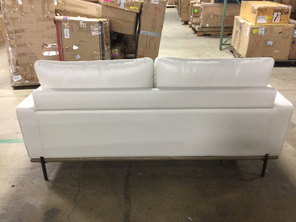 Note: Has a small tear in underneath/bottom dust cover. Has two light scratches; one on left arm facing towards back arm and one on back cushion. Both are hardly noticable and are pictured. Slight rub on right facing wood trim and light scuff on Back leg. See in-house photos for details.