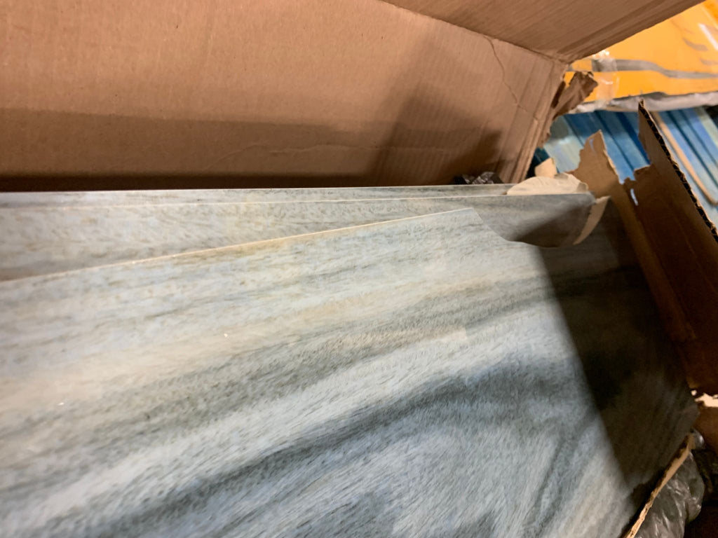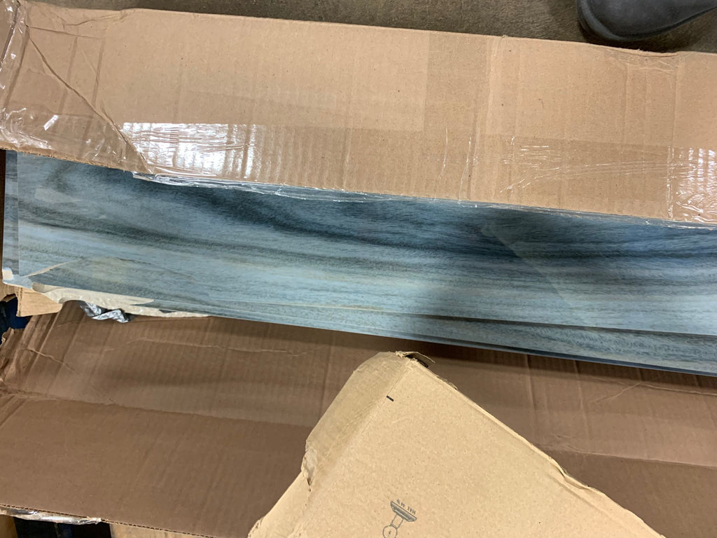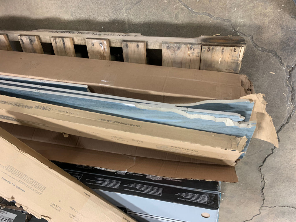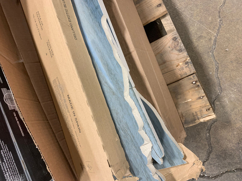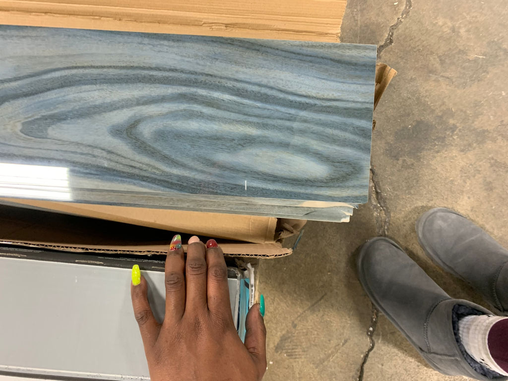 Open box, The color is dellano exotic blue, Size: 8"x48", THIS ITEM IS TO BE SOLD AS IS...IT IS A DIY ITEM DUE TO ALMOST ALL TILE PEICES BEING BROKEN OR HAS MULTIPLE CHIPPED AREAS.THERE IS APPROX. 3 CASES BUT ONLY 8 SLABS THAT ARE CLOSE TO BEING 8"X48"....SEE IN HOUSE PHOTOS FOR MORE DETAILS (3 boxes)