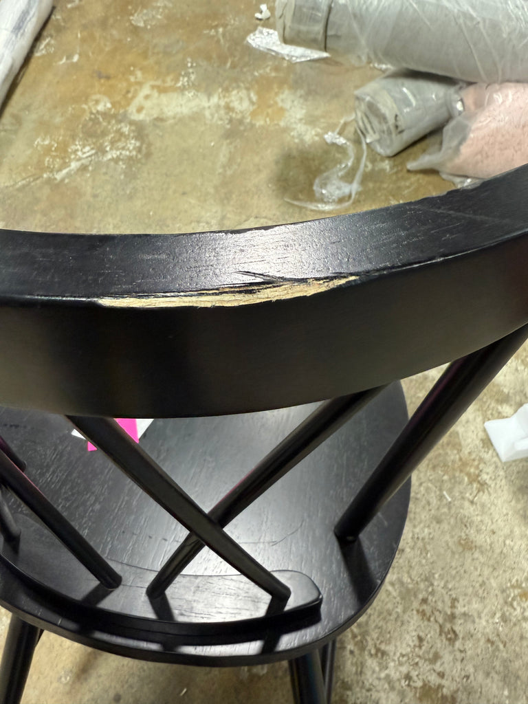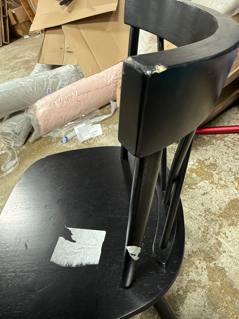 Note: Chair has leftover sticker residue and scratched paint to chair, The chair we have in stock is black, see pictures
