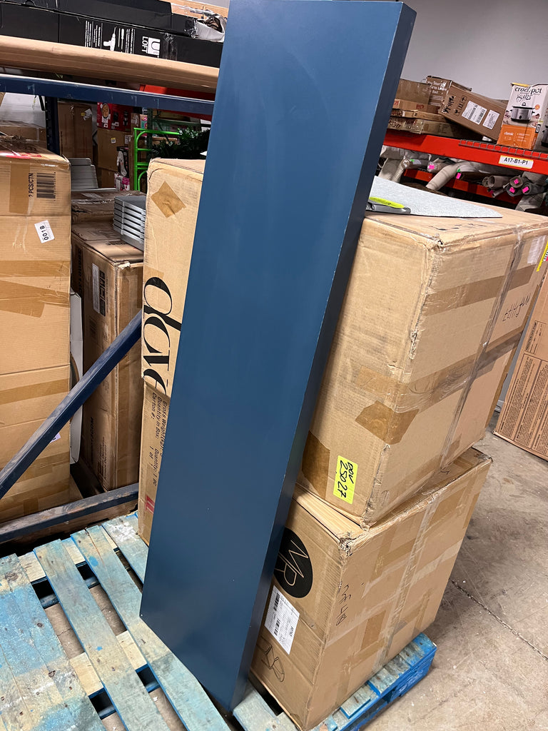 Note: There is some manufacture defect to to face of two of the doors, a small crack on the side panel, the back panel is damaged at eh top and bottom, and what appears to be manufactuer adhesive on the back edge of the top. All cosmetic in nature. See in house photos for details.