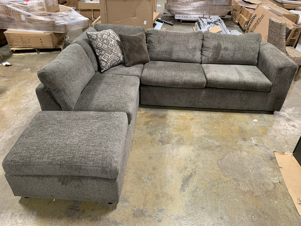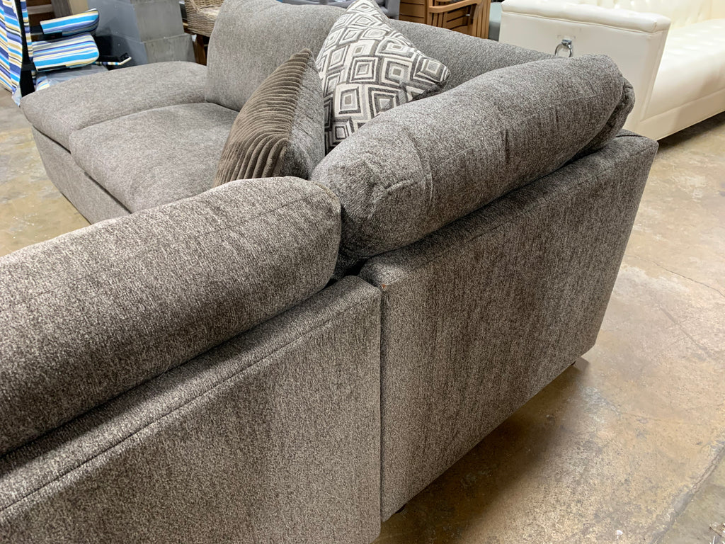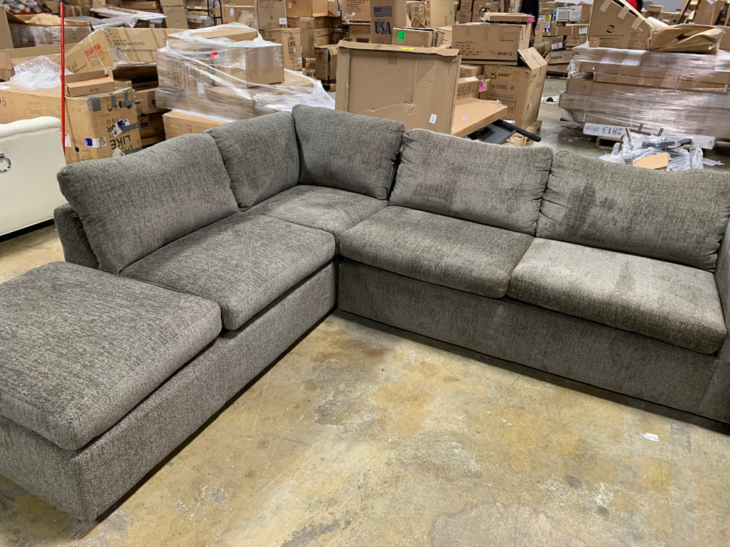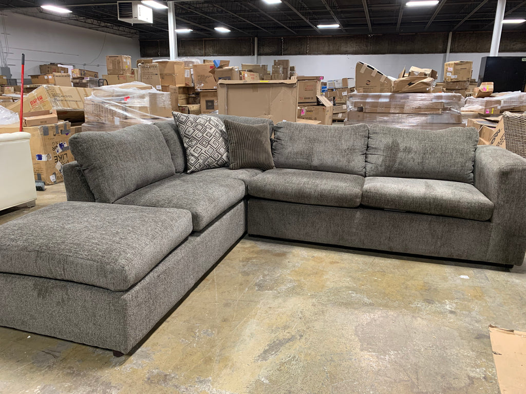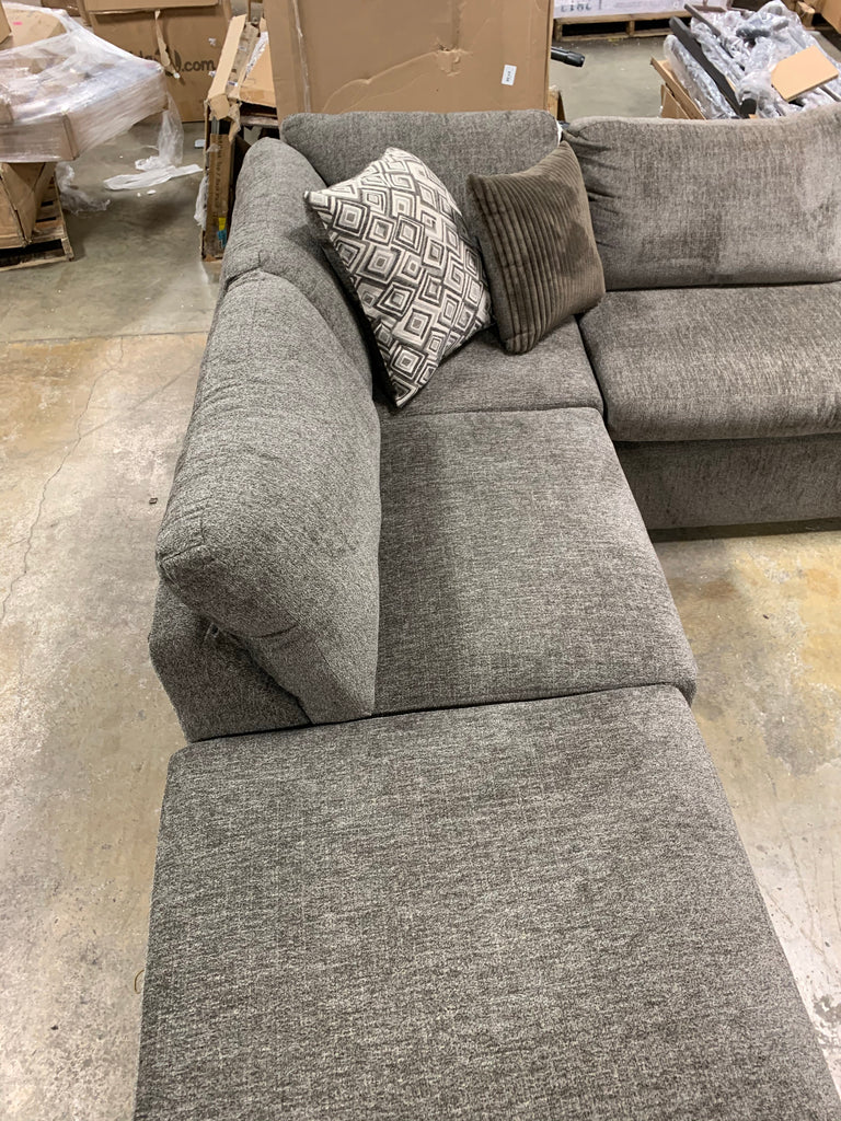 This sectional is in great condition. No stains, rips or holes. Two throw pillows included. Dusty on some cushions, vacuum recommended. Please see all photos and the link below for more details.