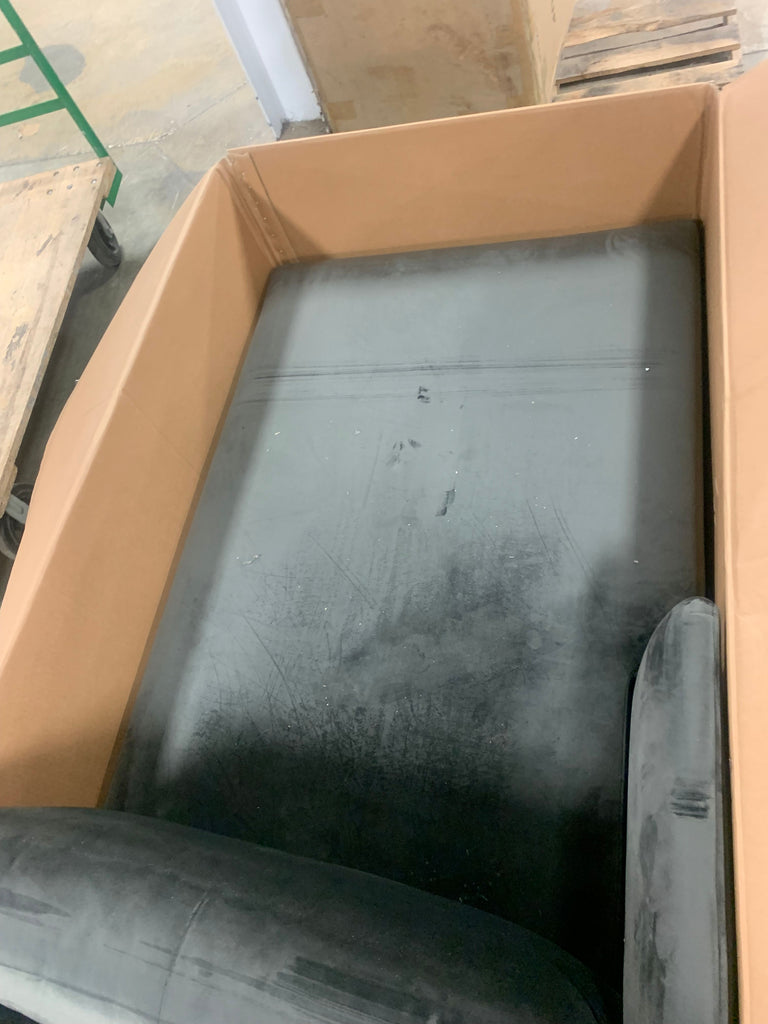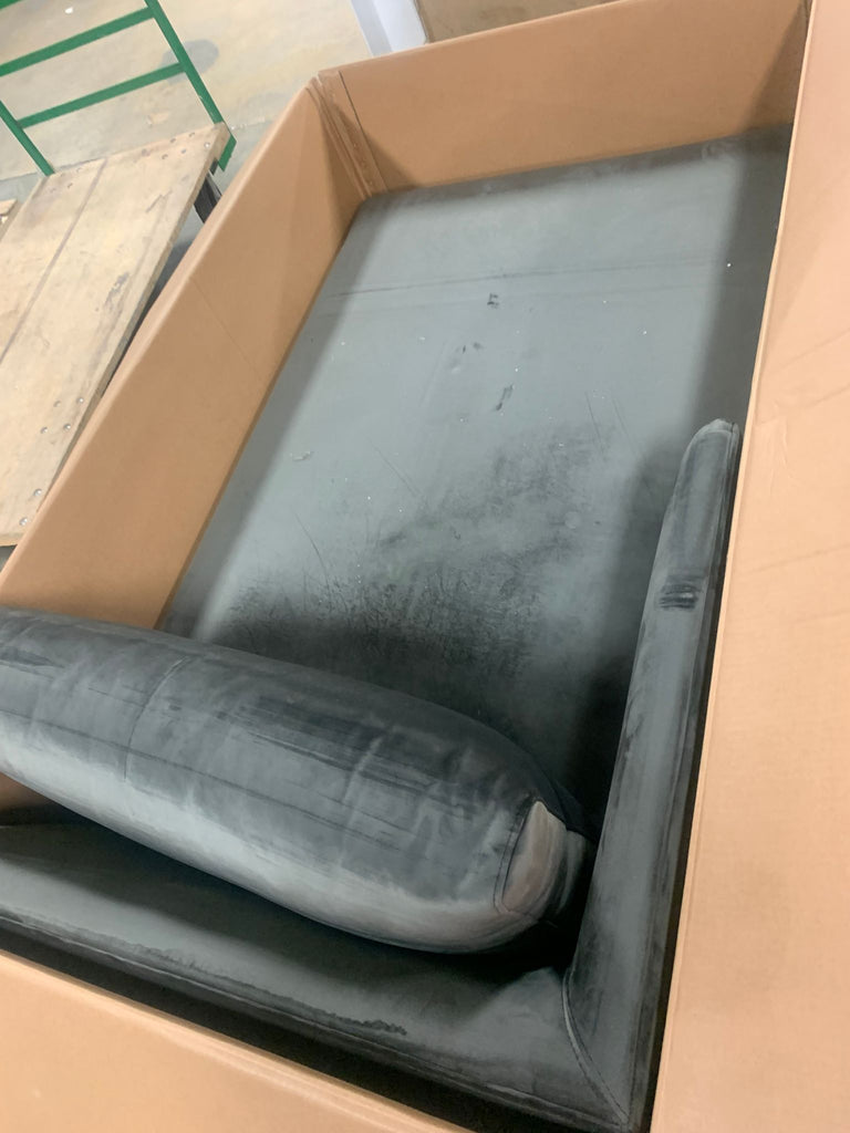 Open Packaging, The color is sapphire gray velvet, Size: left hand facing, this is the left hand facing chaise only...no legs or hardware included...see in-house photos for more details
