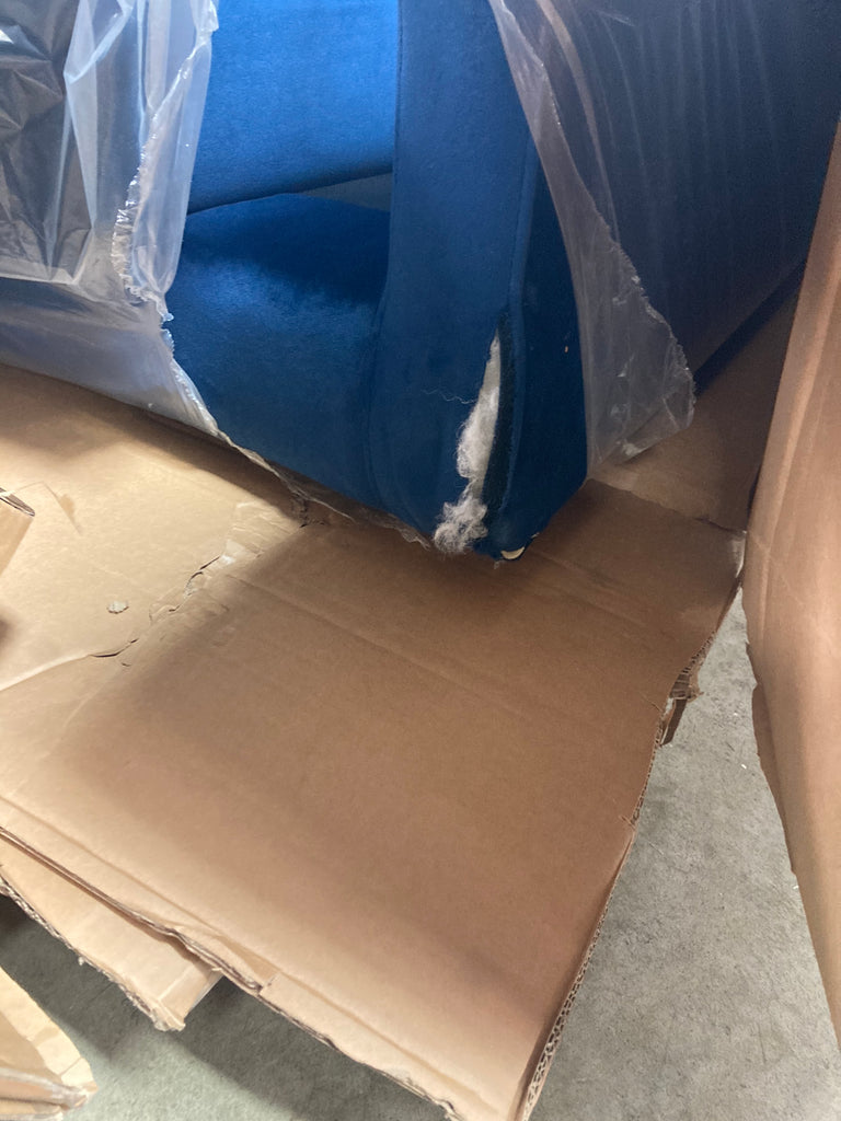 **In good condition except for tear in fabric on front/bottom corner of sofa - where leg attaches that would need to be stitched up. See picture for more details.**