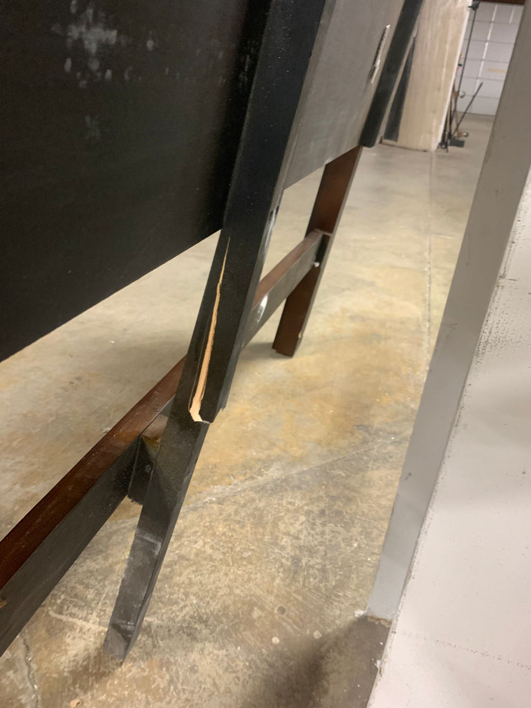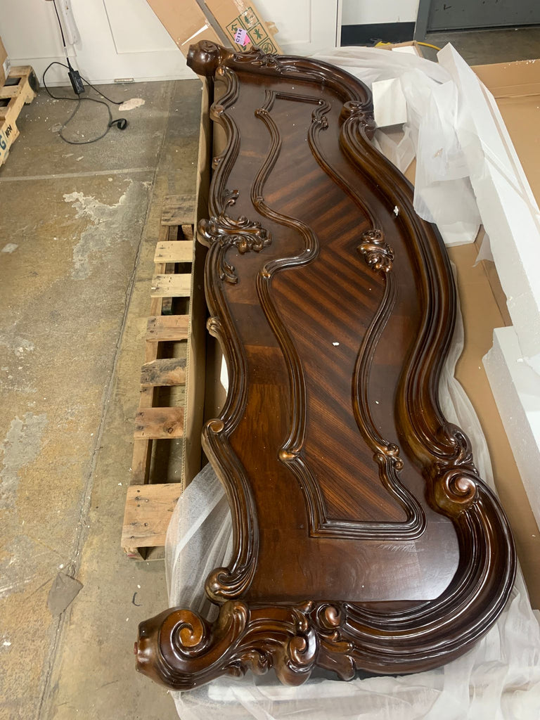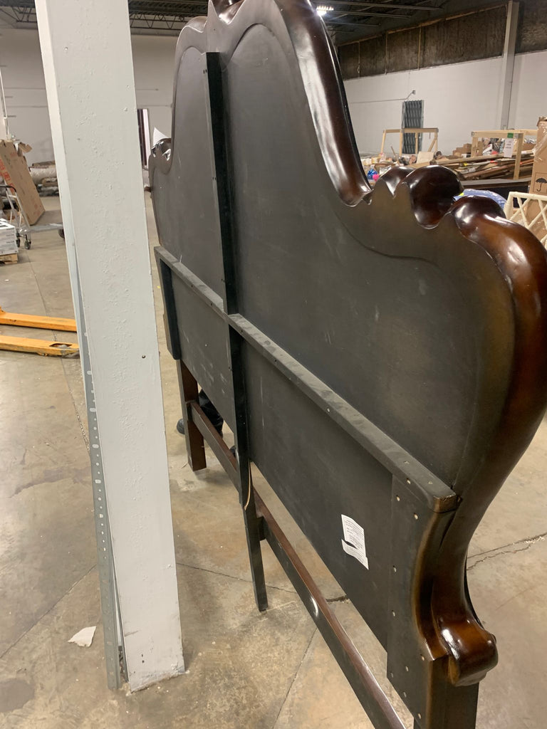Open box, Size: king, THIS IS TO BE SOLD AS IS....this is the headboard and footboard only ...no siderails nor hardware and the middle support leg has some damage and there is some cosmetic damages in multiple areas please see in house photos for more details