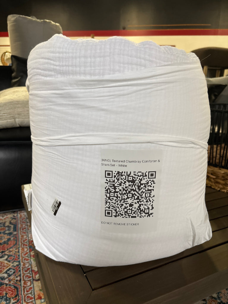 (KING) Textured Chambray Comforter & Sham Set - White SHOWROOM ITEM