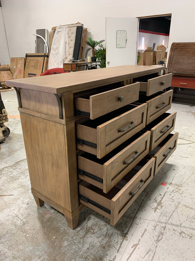 Dresser is in great out of box condition - no imperfections. Drawer has electrical capabilities (3 standard outlets, see photos) that has been tested and is fully functional.