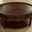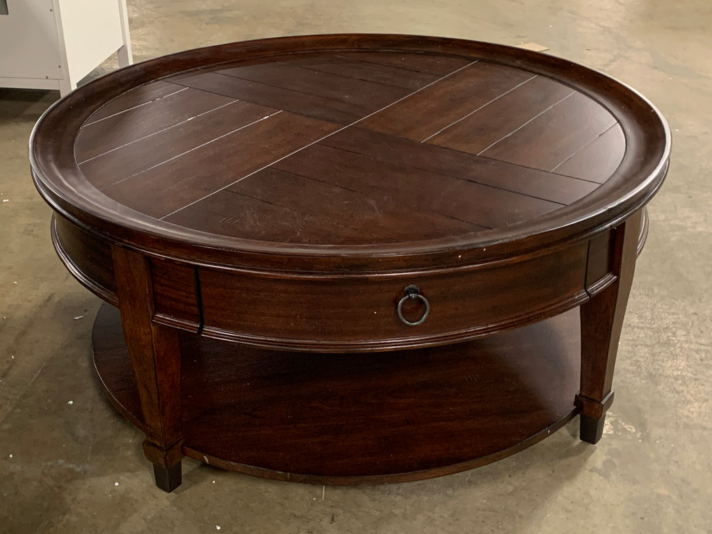 This table is in GREAT condition. Tray extends and closes properly. Built-in wheels on the bottom allow the table to glide with ease. Please see all photos for details.