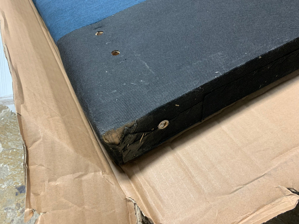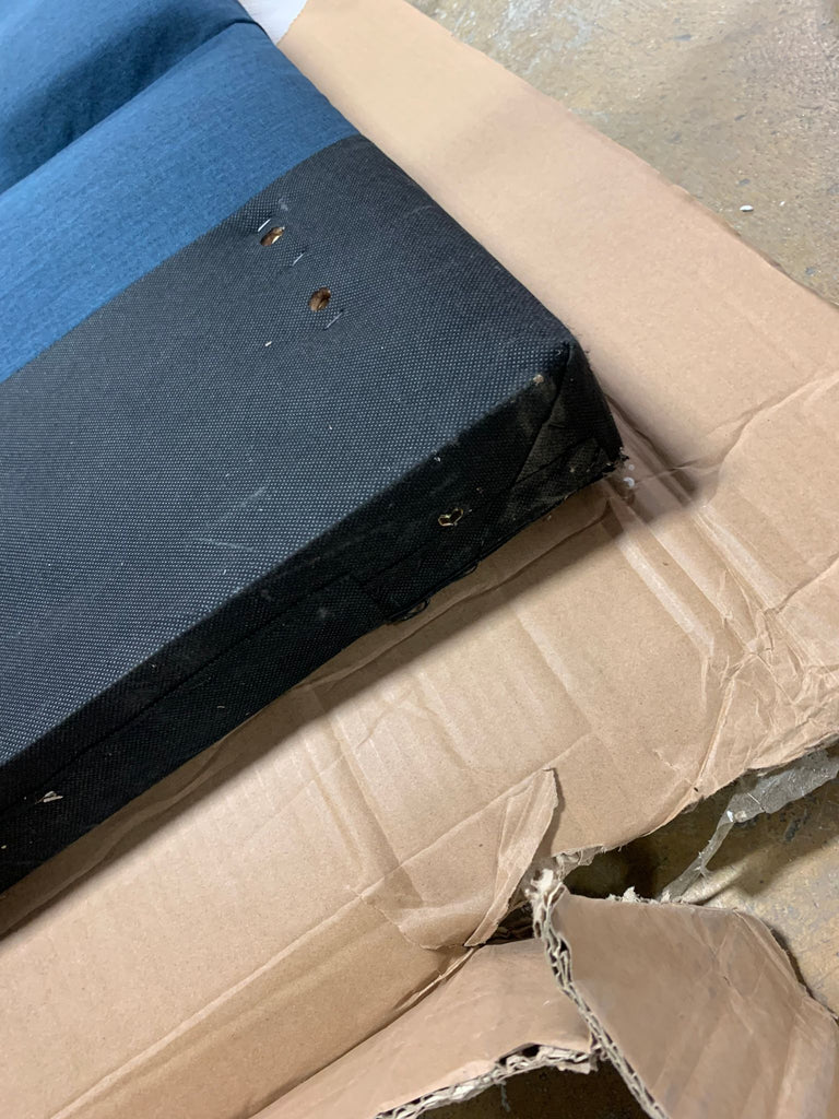 Open box, The color is navy, Size: queen, this item is to be sold as is due to some damage at the bottom of headboard ..this is the headboard only it is missing the wings, slats, footboard, siderails, legs, and all hardware, please see in house photos for more details