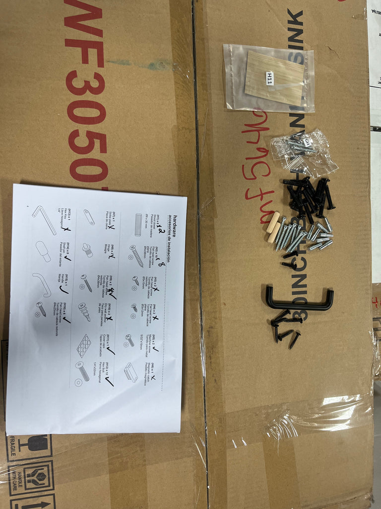 Note: All pieces accounted for. There is some hardware missing. (See hardware sheet picture for more details on hardware.) Instructions included. See pictures for more details.