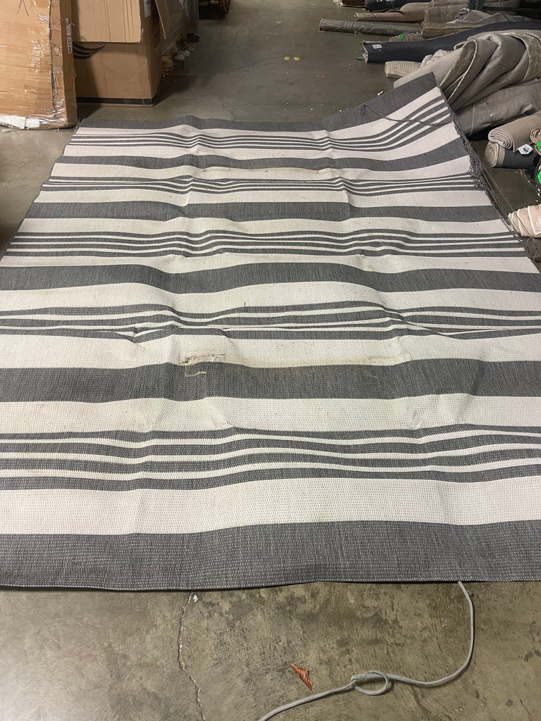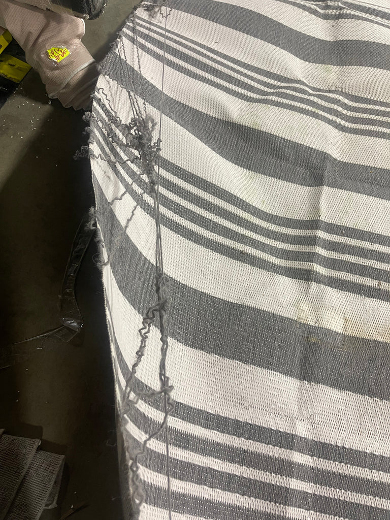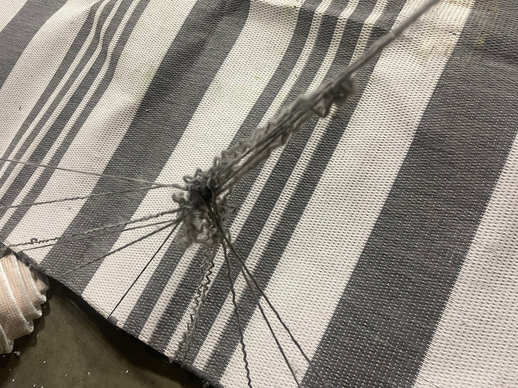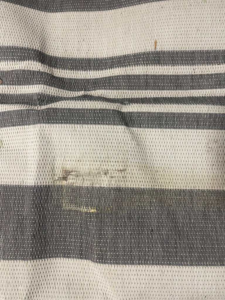 Has dirt spots to middle of rug, has loose pieces of thread,see pictures