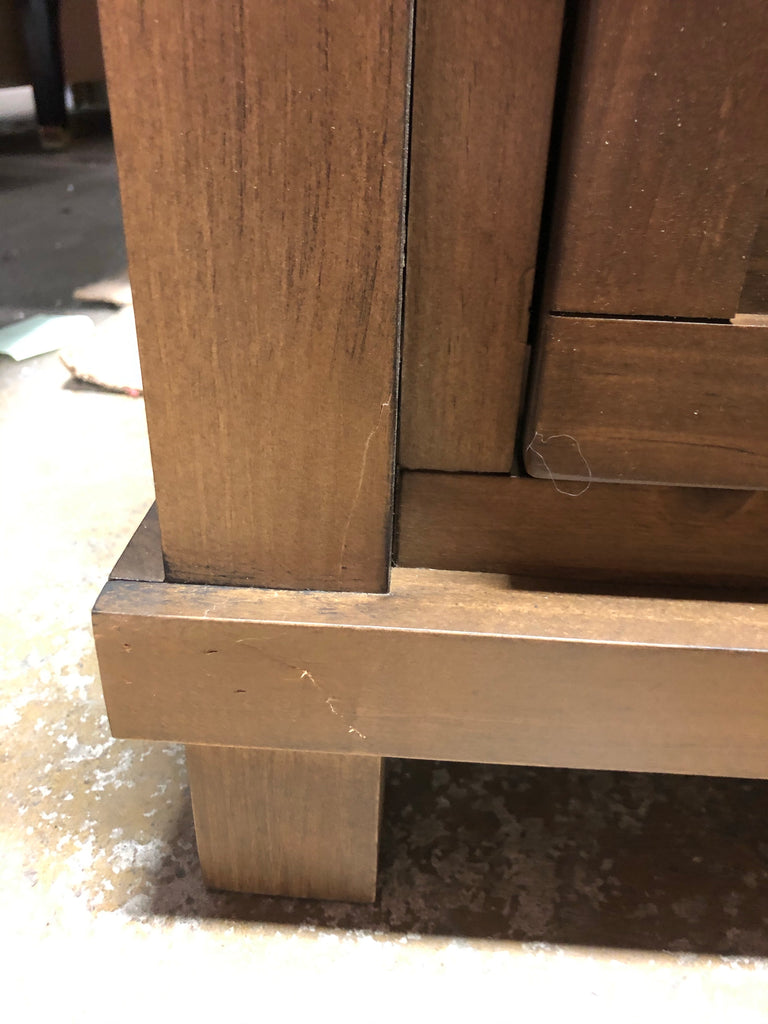 This is an out of box item in great condition. No assembly required. This dresser is a part of a nursery collection but can still be used in a standard bedroom because it is standard size.