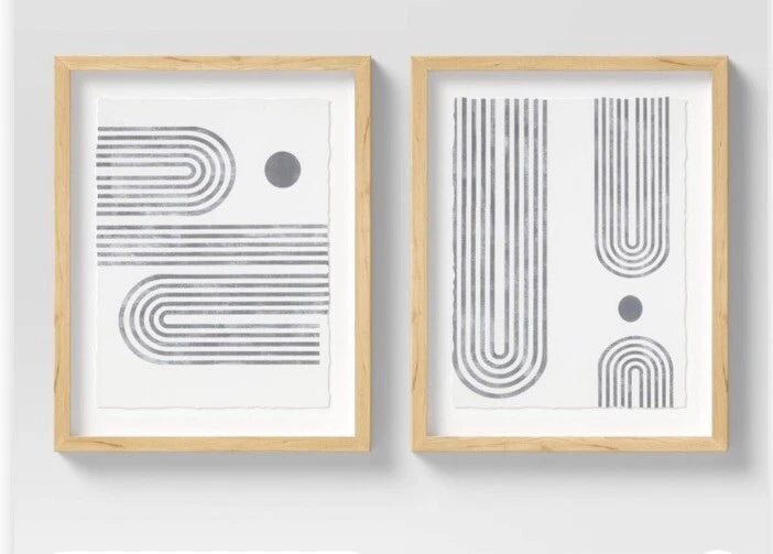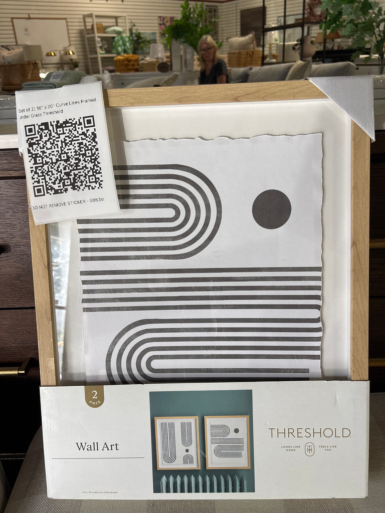 (Set of 2) 16" x 20" Curve Lines Framed Under Glass Threshold SHOWROOM ITEM