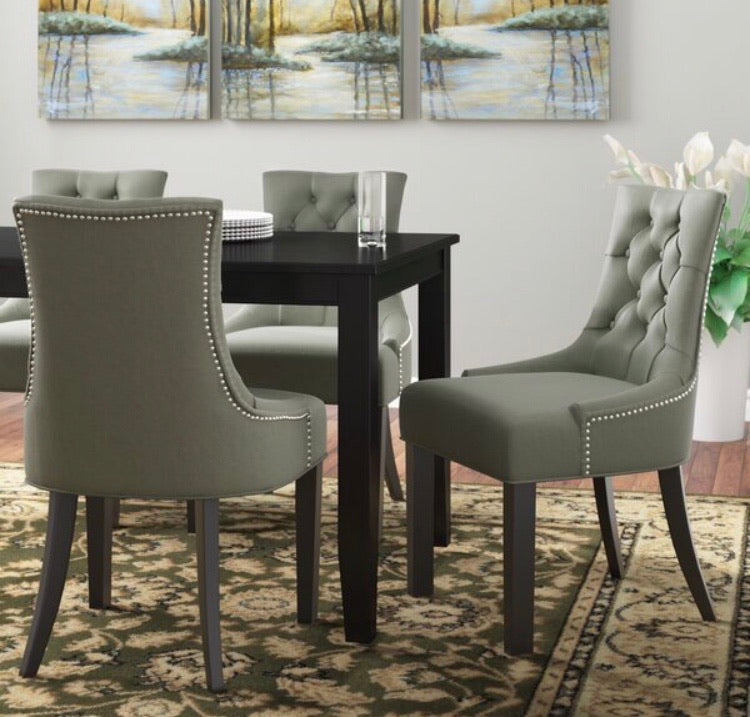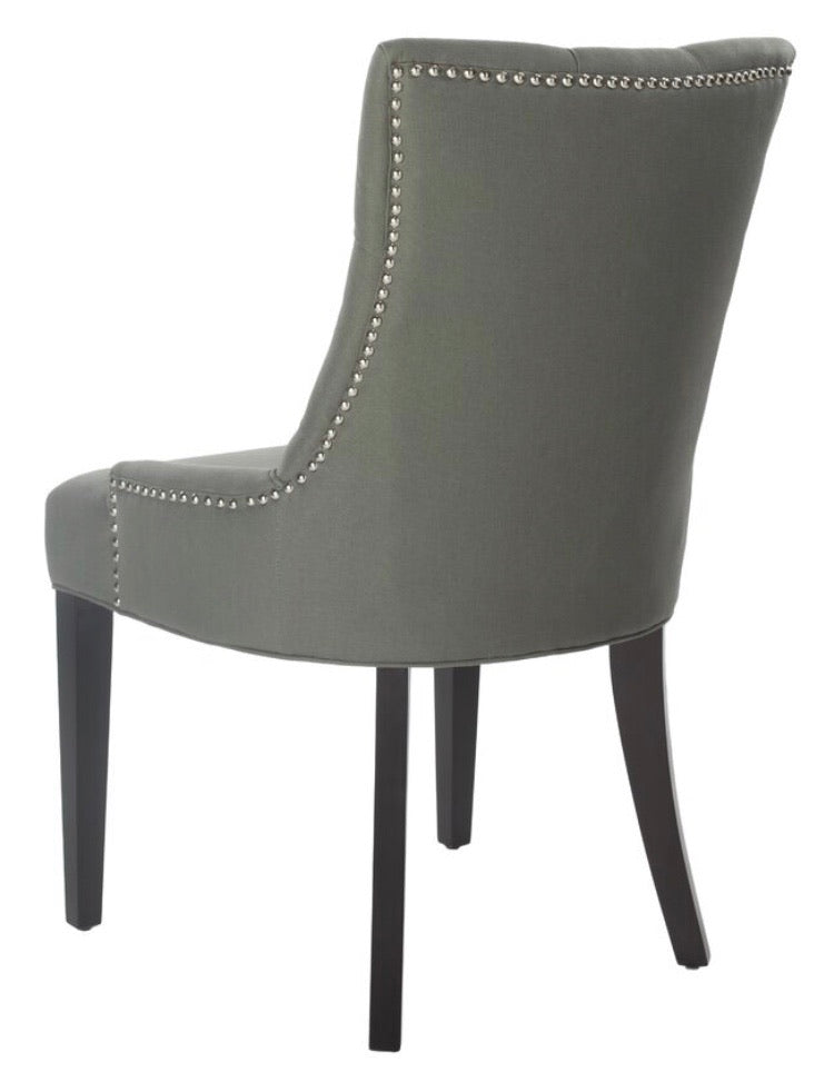 (Set of 2)  Abby Grey Linen Nailhead Dining Chairs CG266