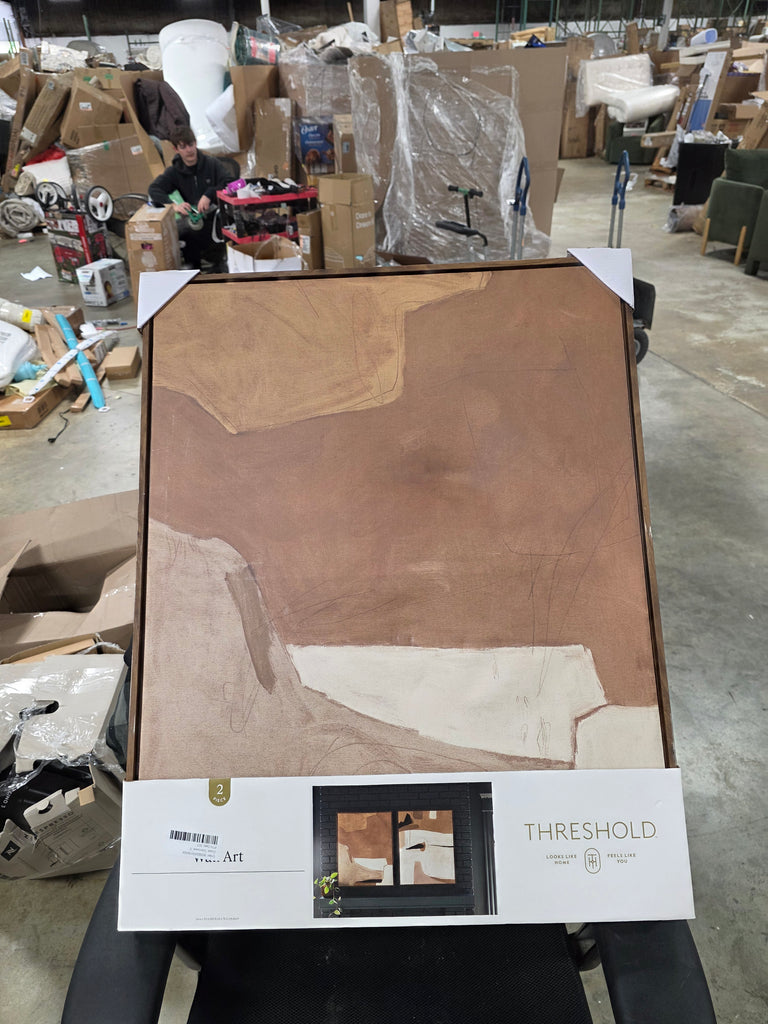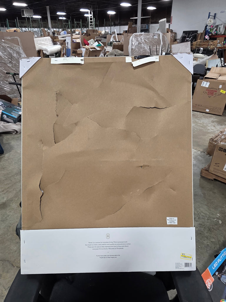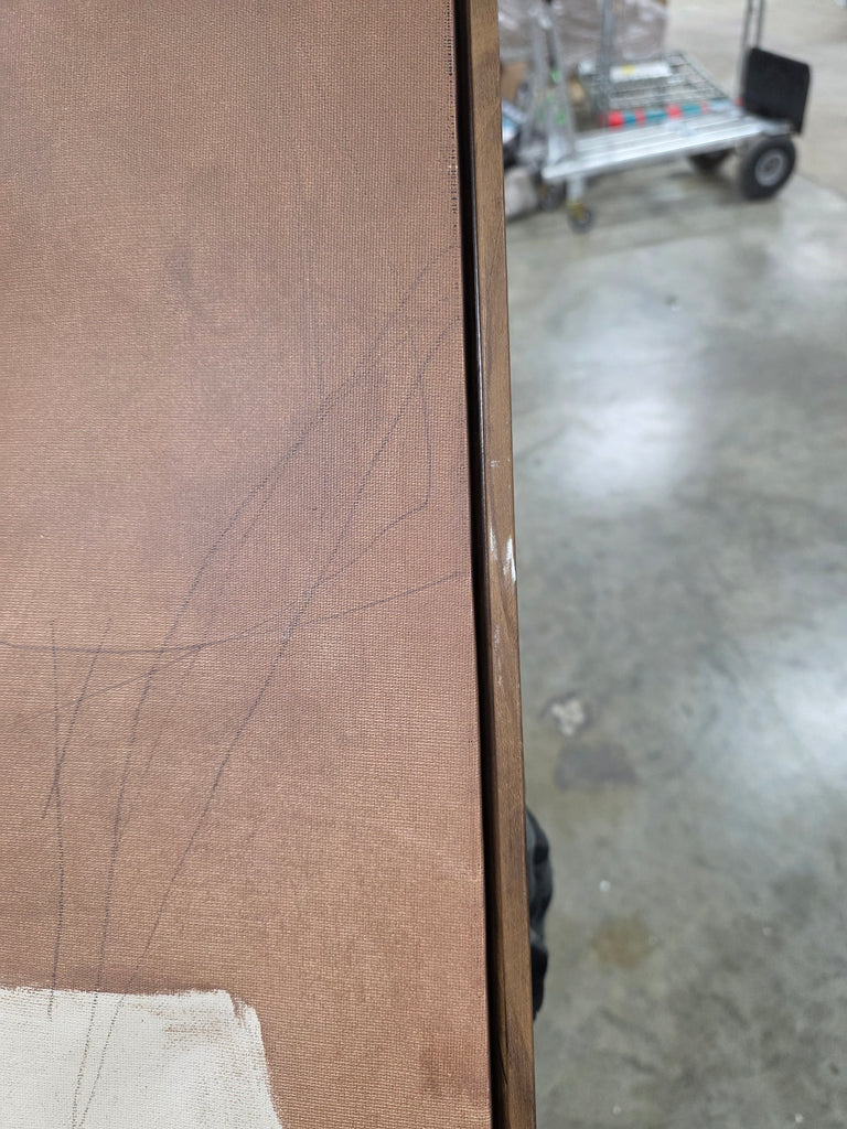 Note: Edges of frame are slightly scuffed. Protective paper back on one of the canvases is broken. See pictures for details.