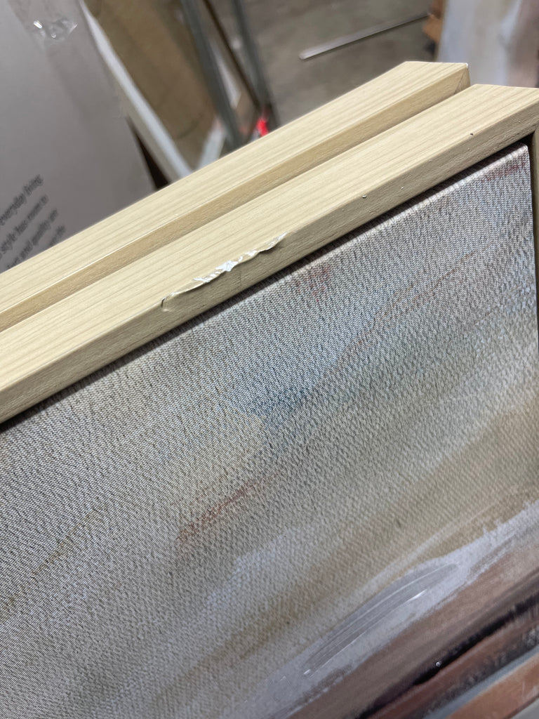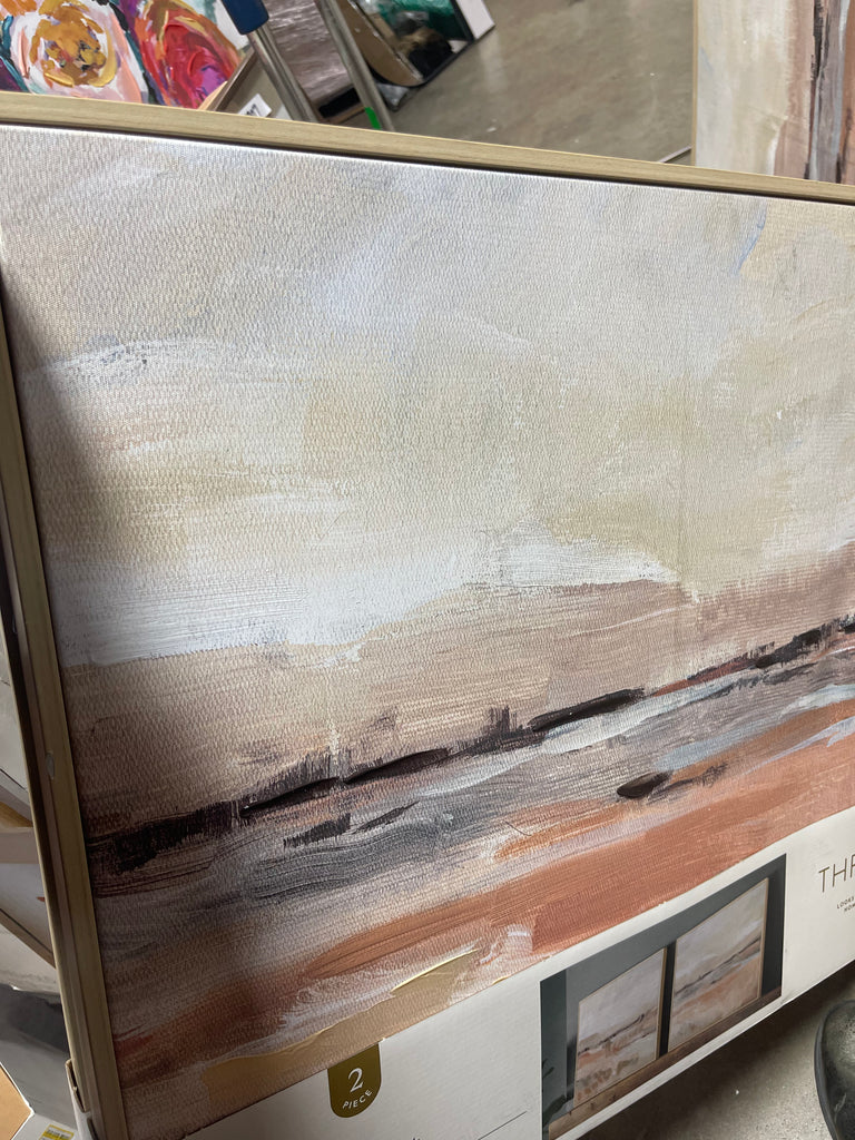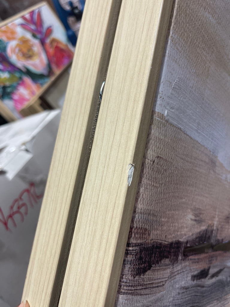 Note: Set of 2, both frames have damage, has markings to first canvas, back paper damaged on second canvas, see pictures.